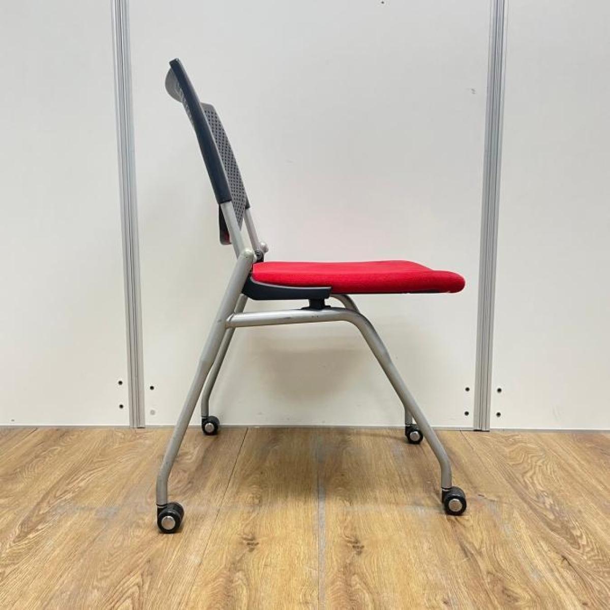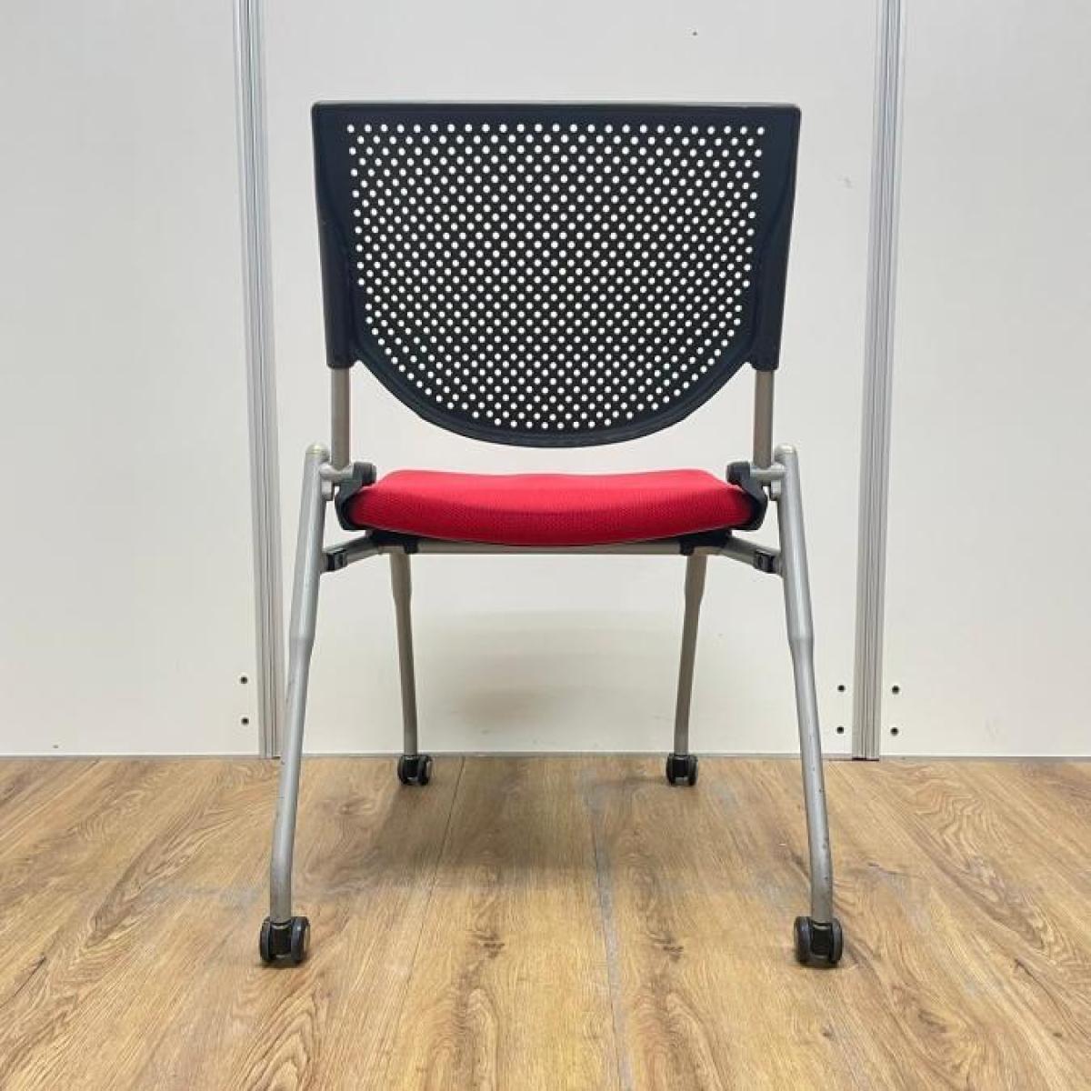 【7/16入荷!】オカムラ製 プロスタックシリーズ レッドカラー プレーンタイプ 背面樹脂メッシュ レッド(座面)×ブラック(背メッシュ) コンパクトに積み重ねて収納 ネスティングチェア!!【AD】- 足立・葛飾店