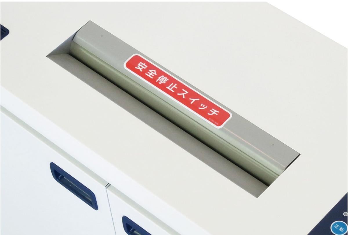 細断紙片が満杯になると自動停止し、ブザーで知らせます。