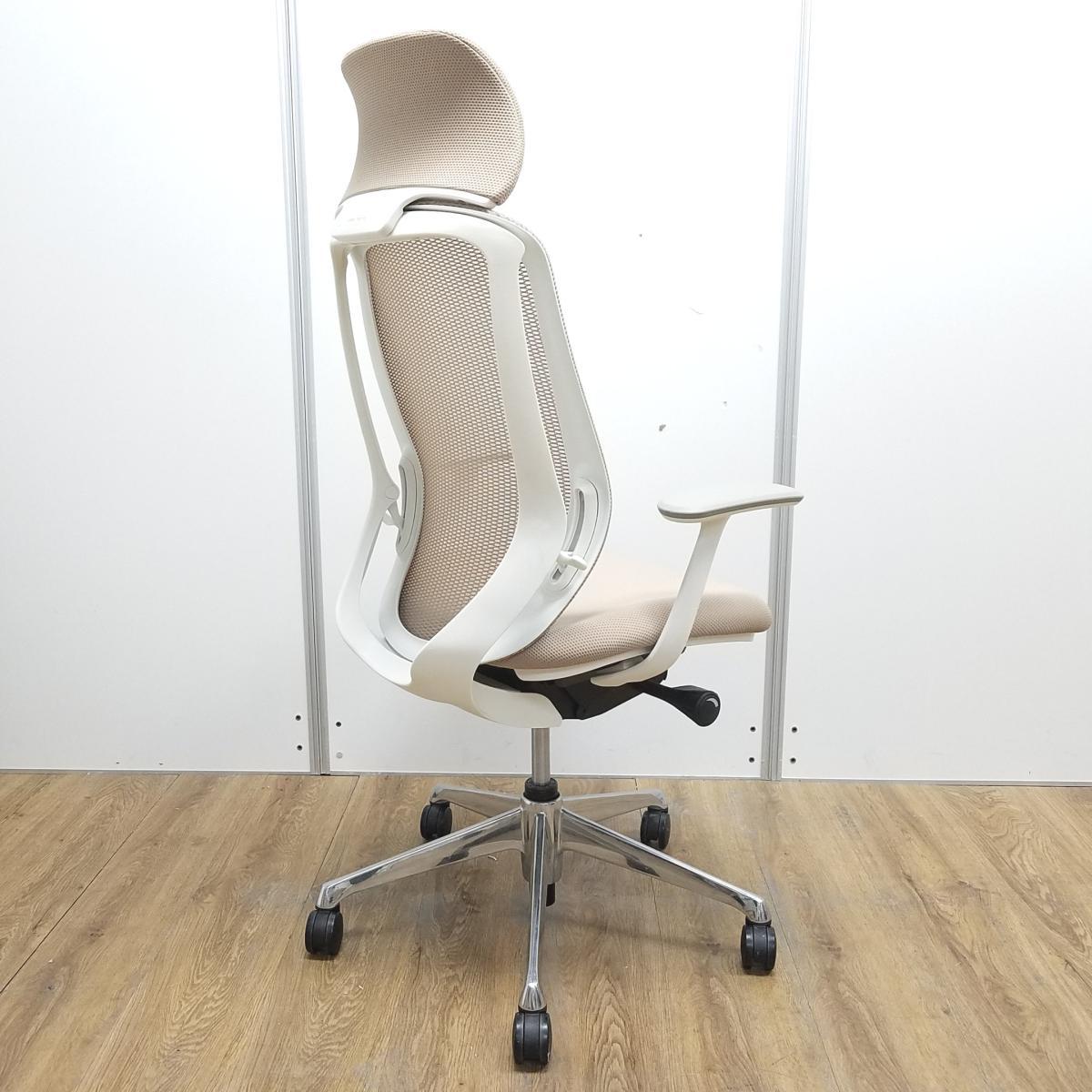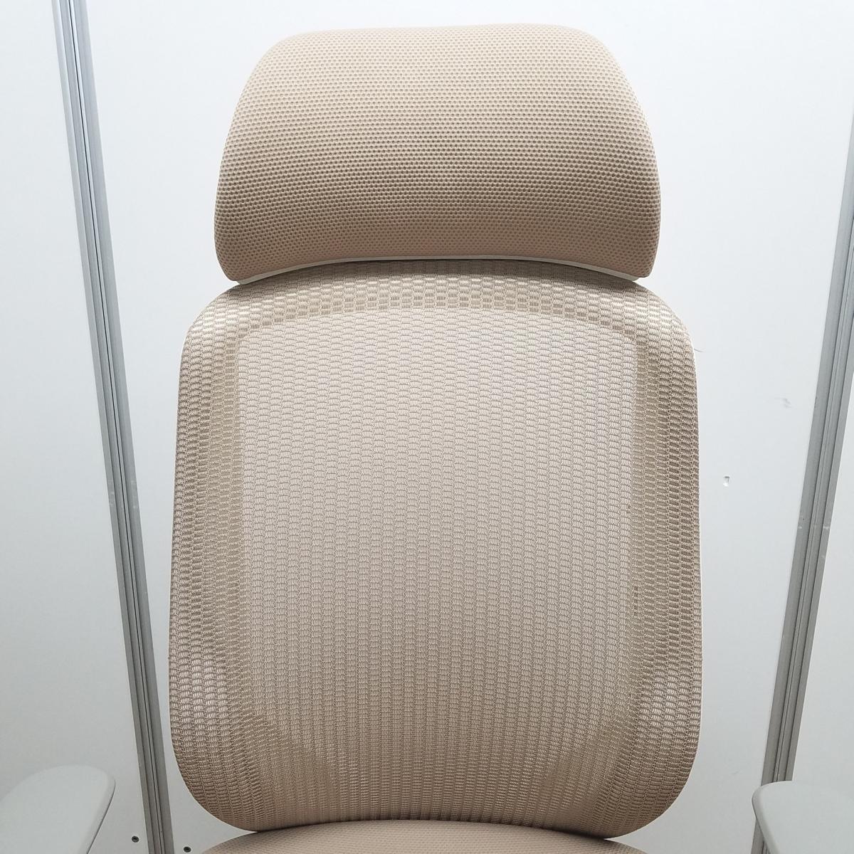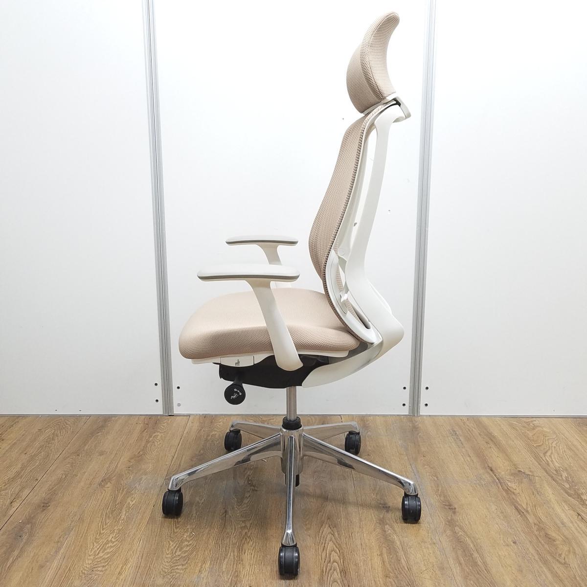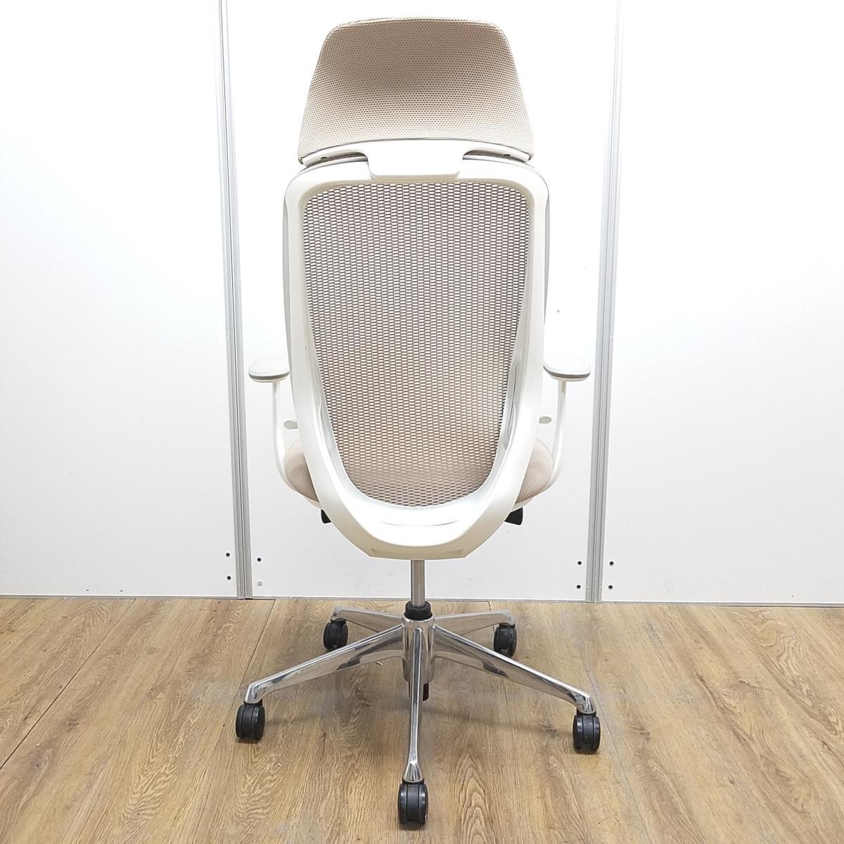 オカムラ製 シルフィシリーズ ベージュ 背もたれメッシュ デザインアーム※固定肘 ポリッシュ脚 ヘッドレスト付き 前傾チルト機能付き オカムラ製品で最も人気を集める高機能メッシュチェア! 肘付きハイバックチェア!!- 京都東寺店