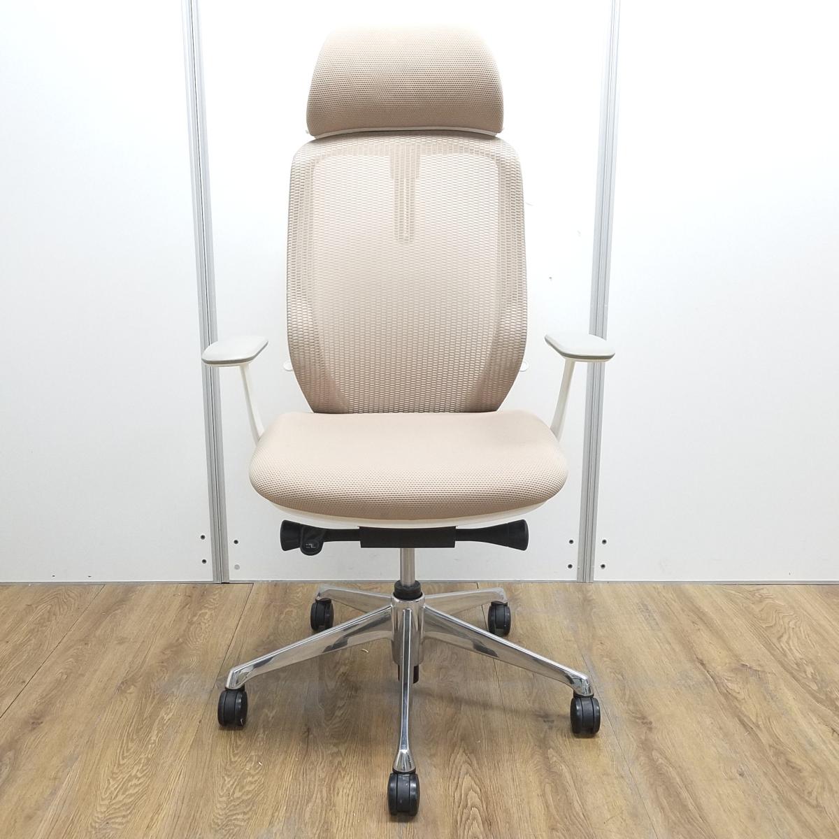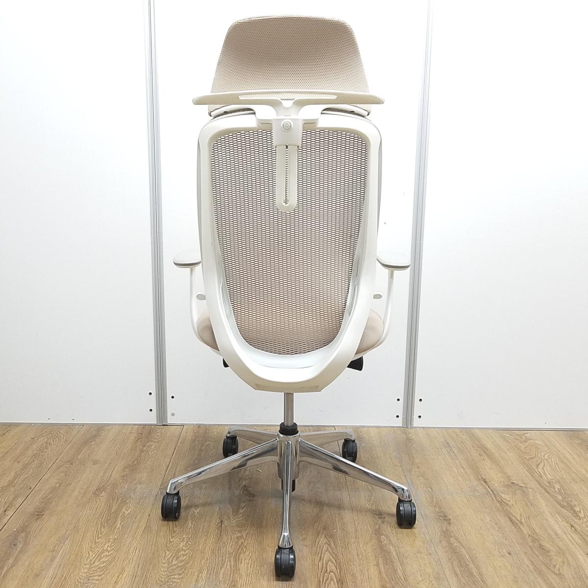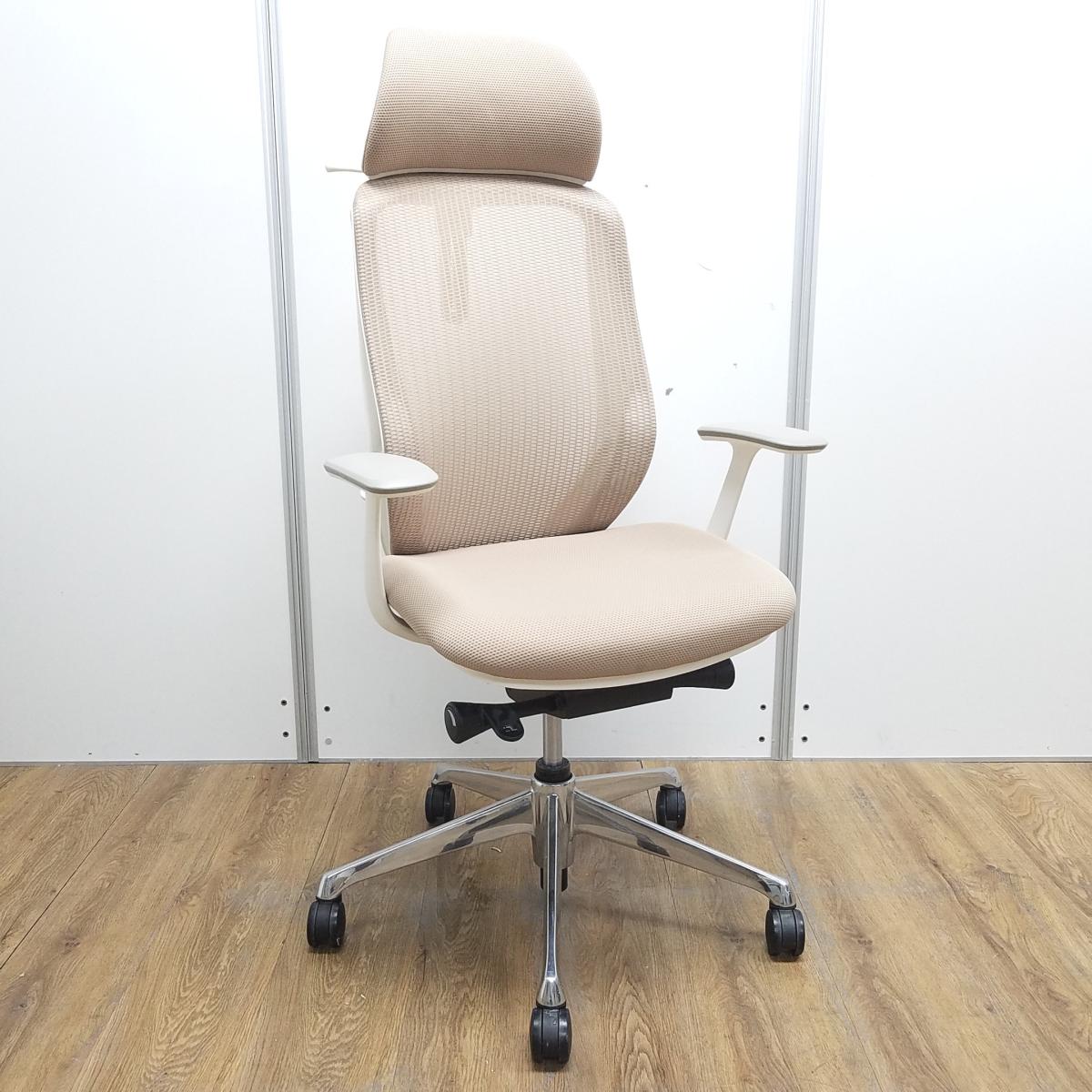 オカムラ製 シルフィシリーズ ベージュ 背もたれメッシュ デザインアーム※固定肘 ポリッシュ脚 コートハンガー/ヘッドレスト付き 前傾チルト機能付き オカムラ製品で最も人気を集める高機能メッシュチェア! 肘付きハイバックチェア!!- 京都東寺店