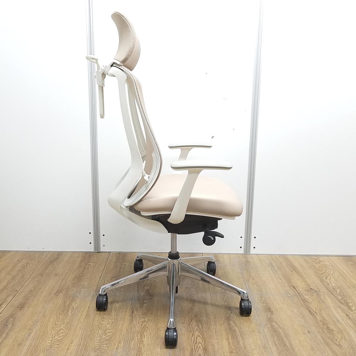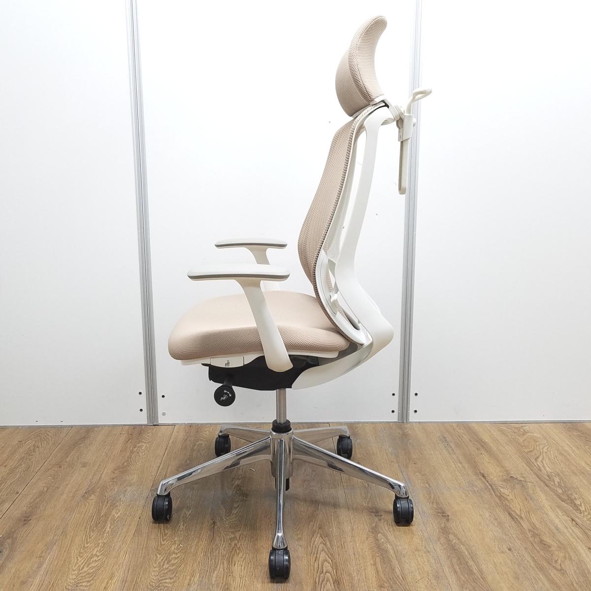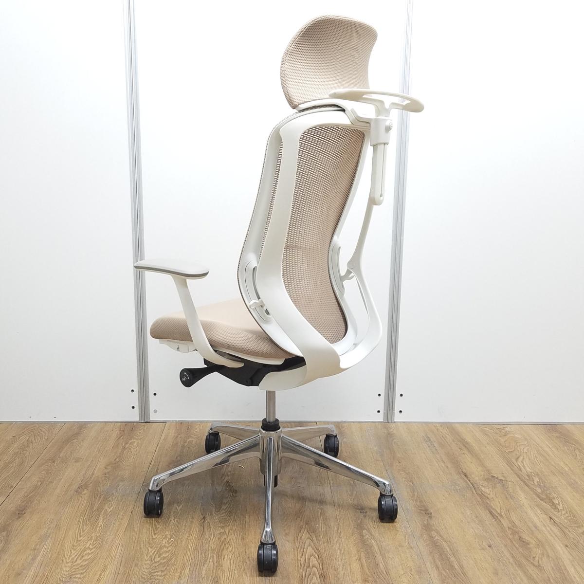 オカムラ製 シルフィシリーズ ベージュ 背もたれメッシュ デザインアーム※固定肘 ポリッシュ脚 コートハンガー/ヘッドレスト付き 前傾チルト機能付き オカムラ製品で最も人気を集める高機能メッシュチェア! 肘付きハイバックチェア!!- 京都東寺店
