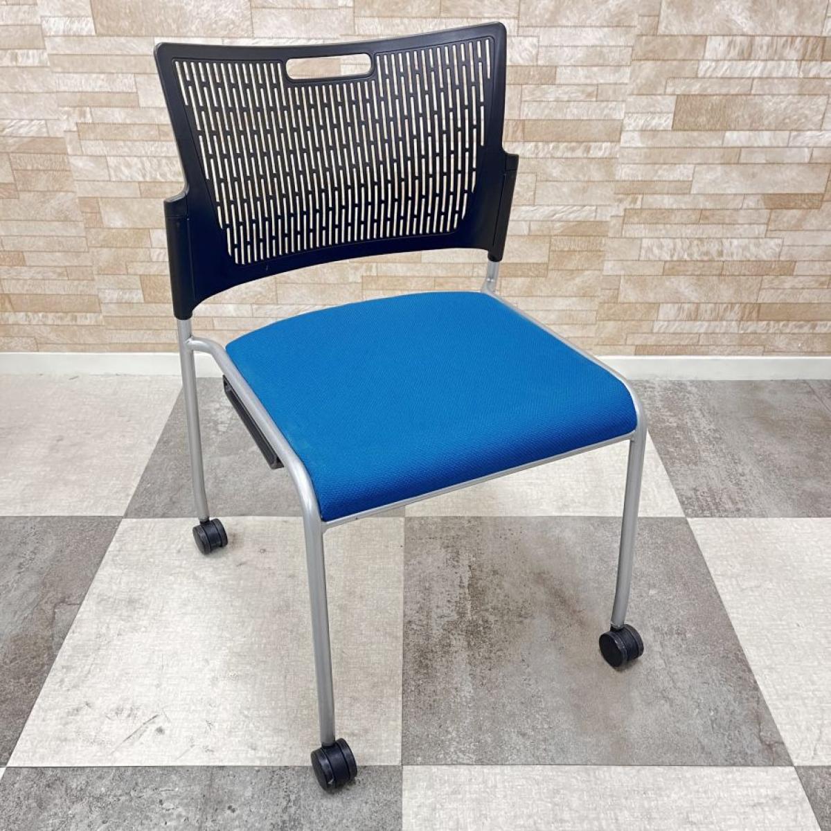 【4脚セットで大ロット商品!】■オカムラ(okamura) レーテシリーズ ■ターコイズ 背もたれブラック樹脂 ■キャスター付 スタッキングチェア ミーティングチェア4脚セット 単品買いよりも少しお安く!【山盛り在庫のチョモランマ!】在庫がある店舗一覧