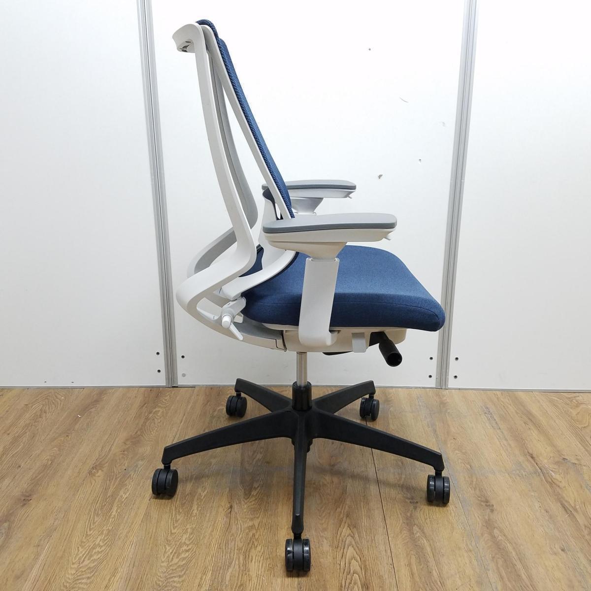 【二重フレーム構造がもたらすしなやかで美しい背もたれ機能!簡易操作で自分に合った姿勢をサポート!】■コクヨ製 デュオラ2(Duora2) ハイバック 肘付き ■背面メッシュ ■可動肘 ■ランバーサポート ■ターコイズブルー×ホワイトシェル- なんば日本橋店