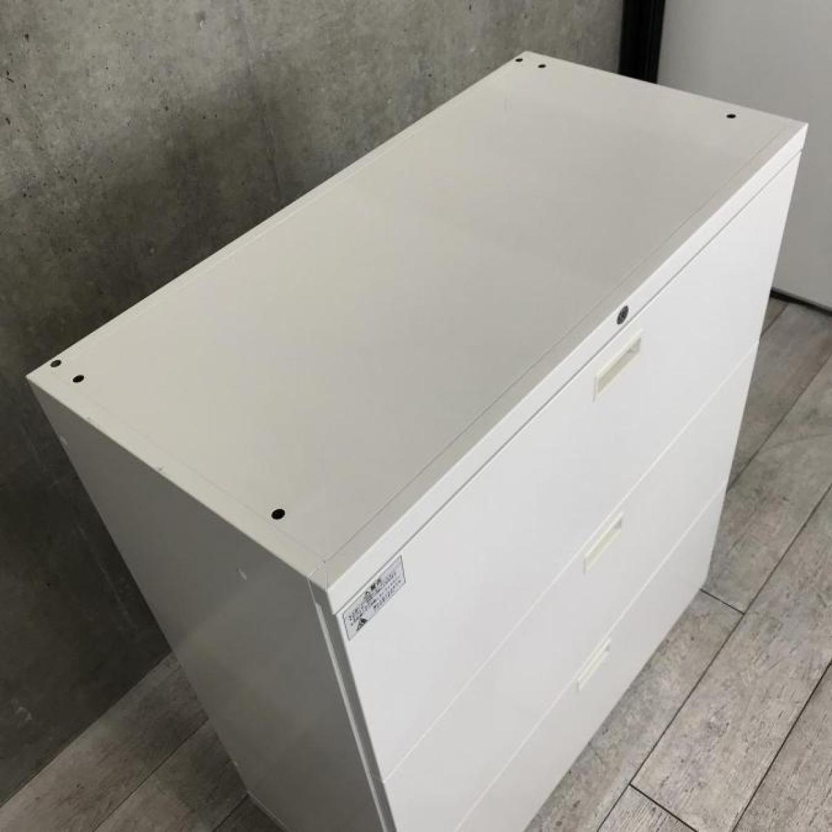 【汎用性抜群の大容量書庫!抜群の収納力で書類をスッキリ整理!】■クロガネ(KUROGANE)製 ■3段ラテラル書庫 ■ローキャビネット W900×D400×H1100㎜ ■シリンダー錠 ■カラー:ホワイト- つくば店
