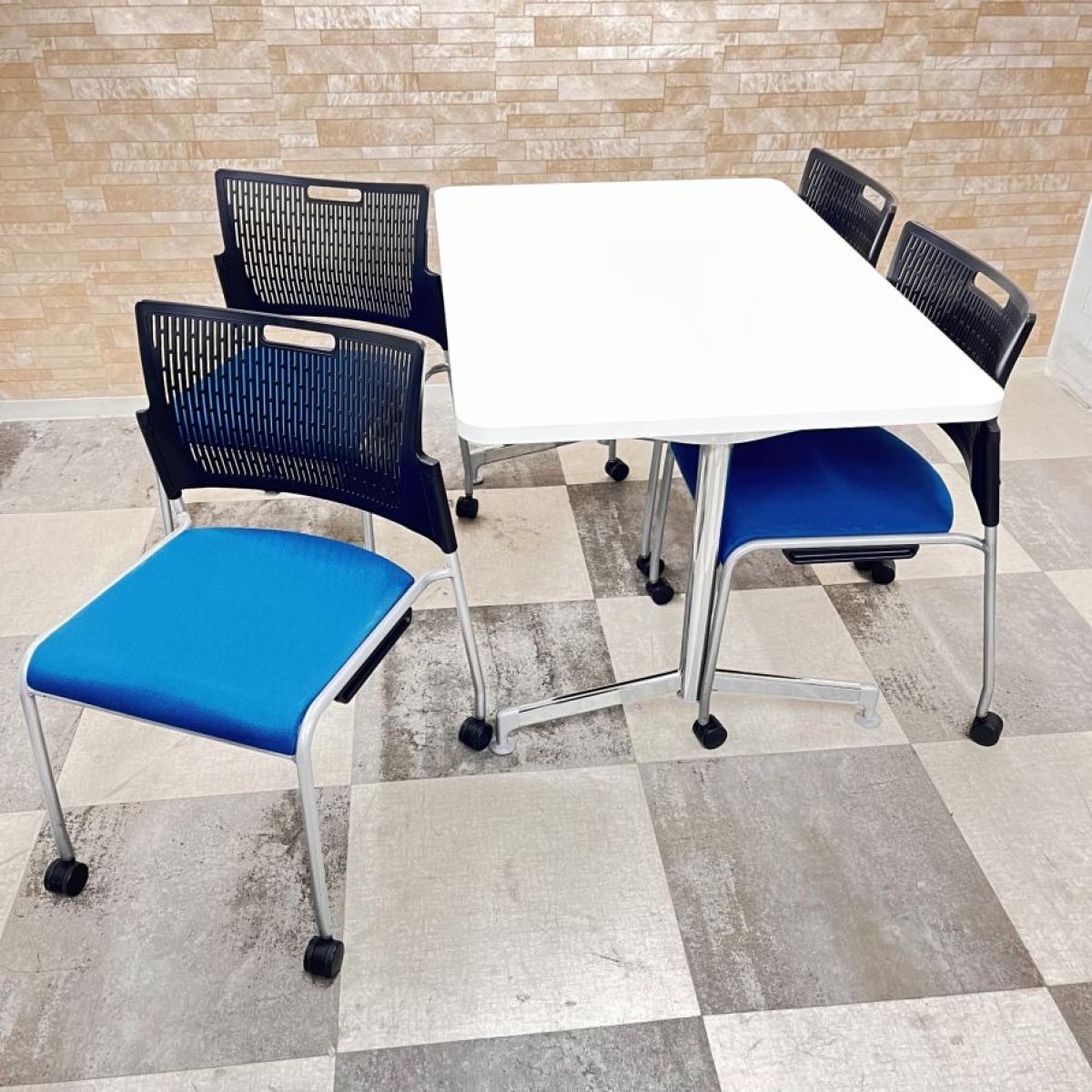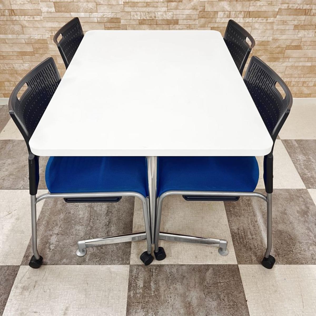 【限定4セット!ミーティングテーブルとスタッキングチェアのセットです!】■コクヨ(KOKUYO)製 イートインシリーズ ミーティングテーブル W1200×D800×H700㎜ ■ホワイト ■休憩室ライフスターターパック【リフレッシュスペースやイートインスペースにもフィット!】- 大阪・堺店