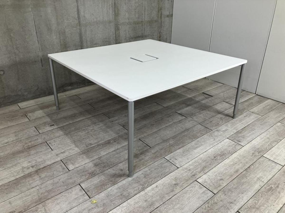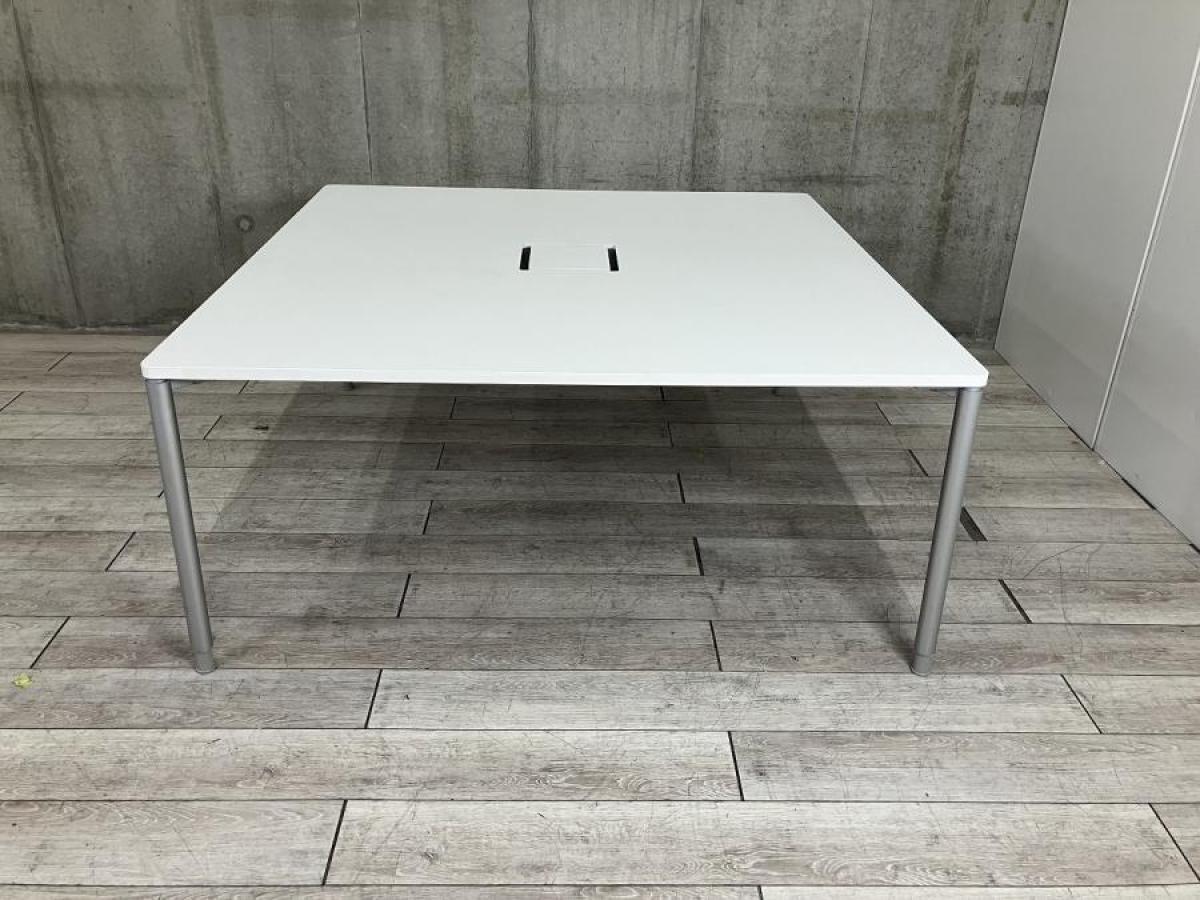 【在庫入れ替え】【スタイリッシュなミーティングテーブル!ワークデスクとしても使用可能!】 ■オカムラ製 角テーブル ■W1600mm ■配線口 ■ホワイト- 名古屋本店