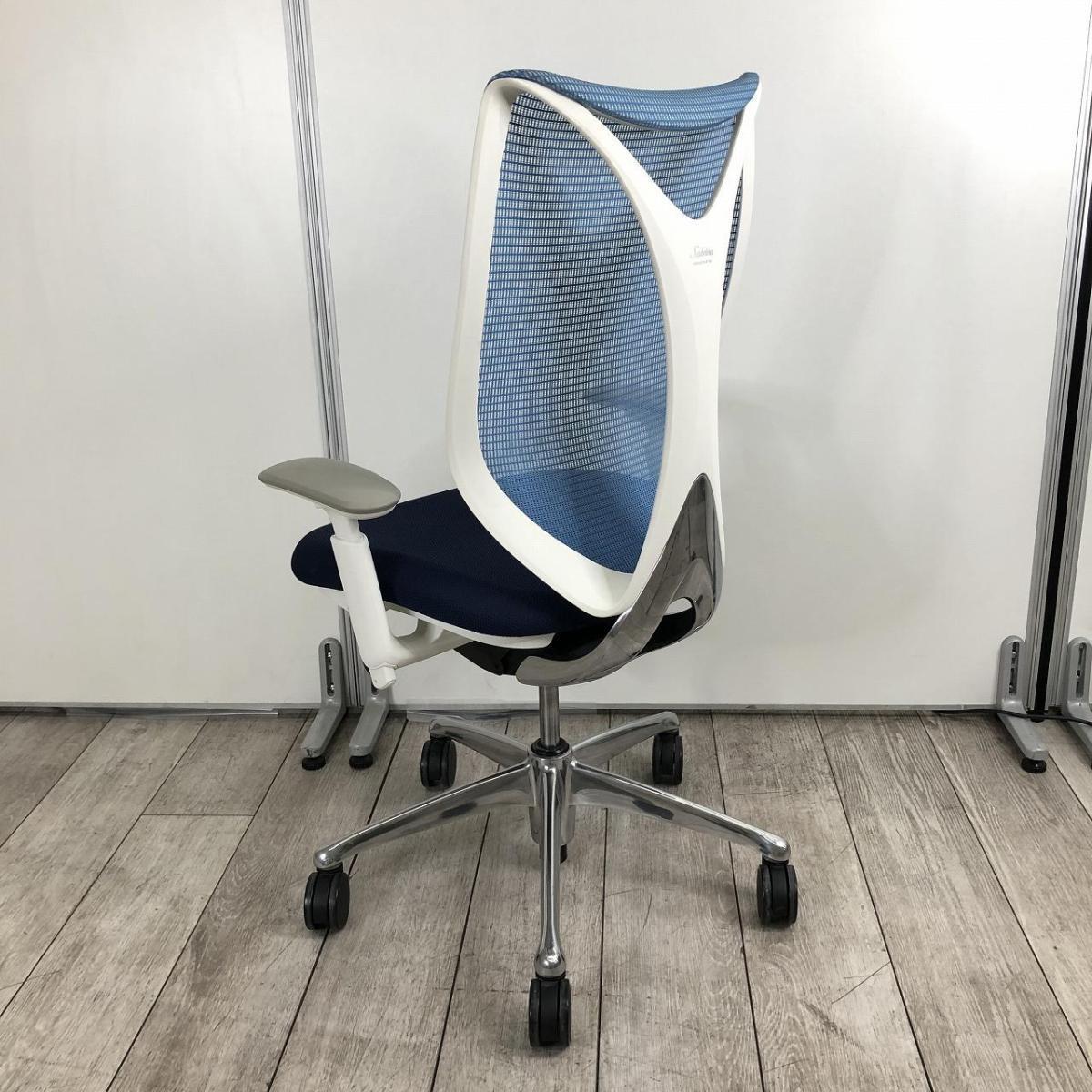 【定価約15万円】【前傾チルト付!流れるような美しいフォルムの最高級メッシュチェア!】■オカムラ(okamura)製 Sabrina(サブリナ) ハイバック 肘付き ■可動肘 ■背面メッシュ:アクアブルー 座面:ブルー ホワイトフレームサーキュラーバリューCO2削減量の算出について