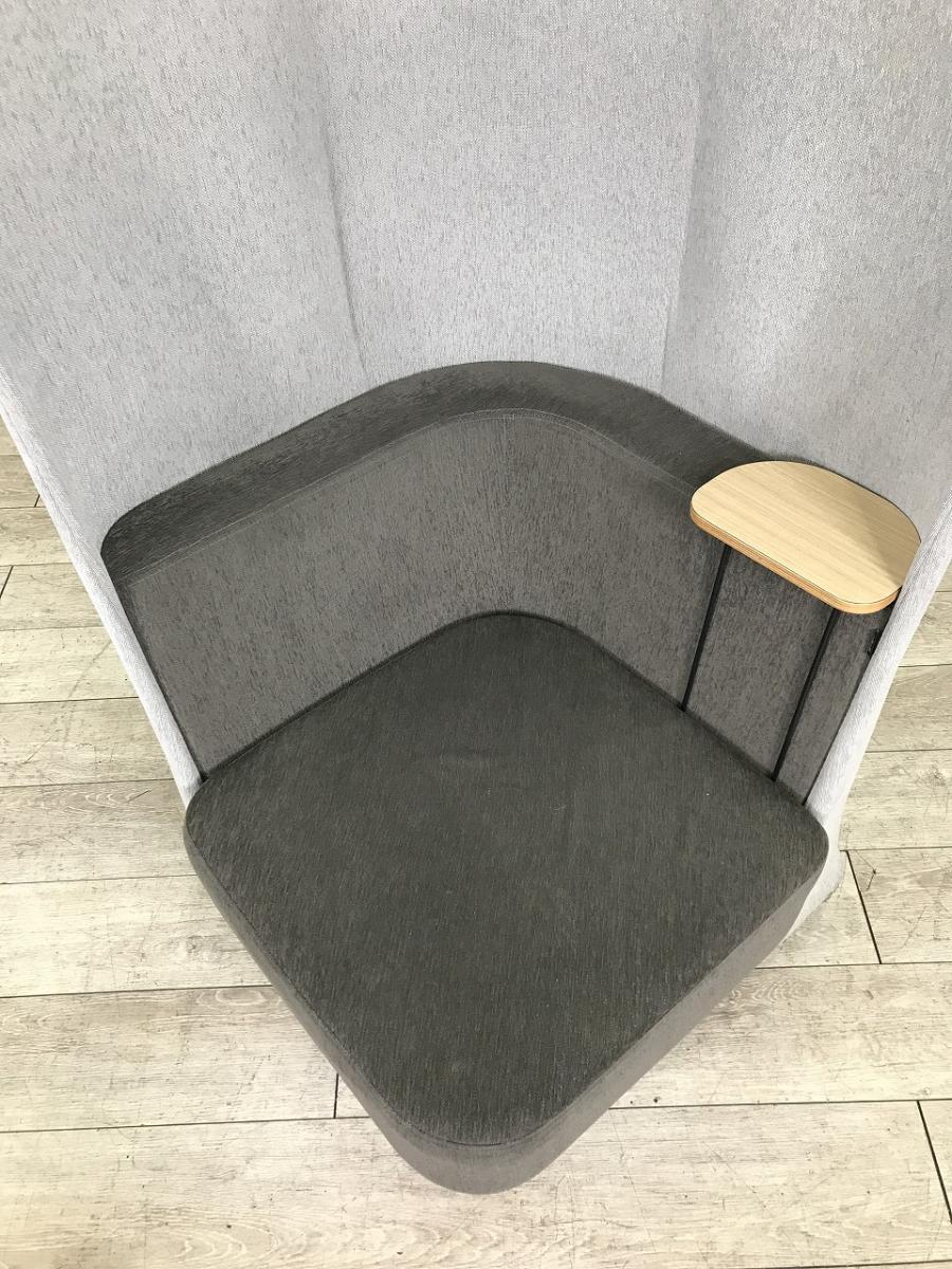 【オープンな空間に、セミクローズドな空間を!】■イトーキ(ITOKI) ピナモ(pinamo) 1人用ブースソファ 1シータータイプ ■アームテーブル付き ■キャスター付き ■ブース本体:グレー×クッション:シトラスグリーン 【ABW商材】【関東倉庫在庫品】【弊社使用欄:A01024467】- 全店共通商品