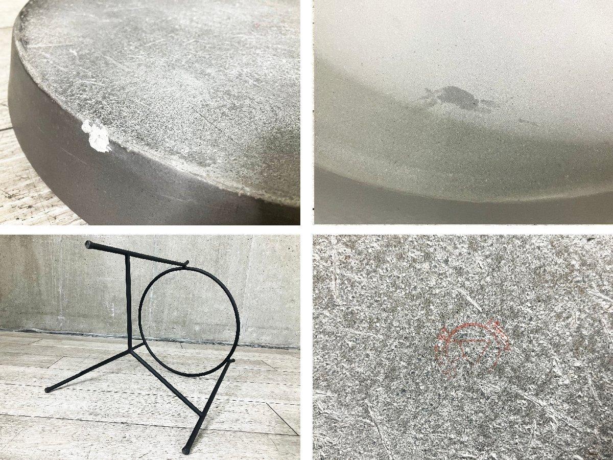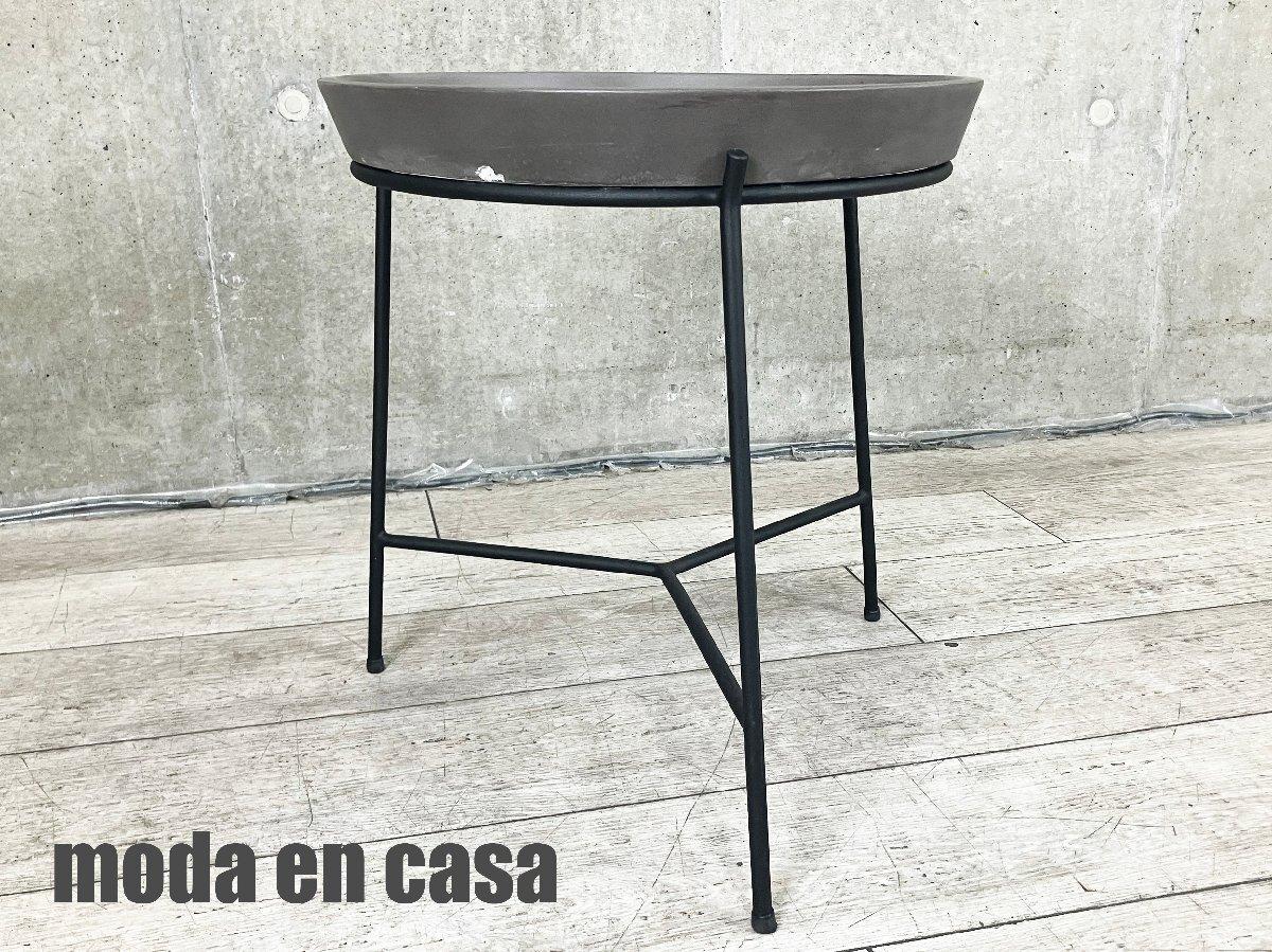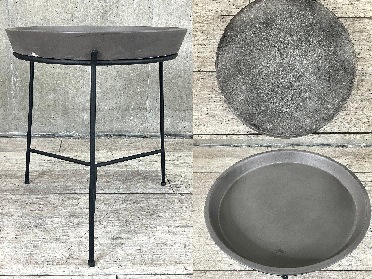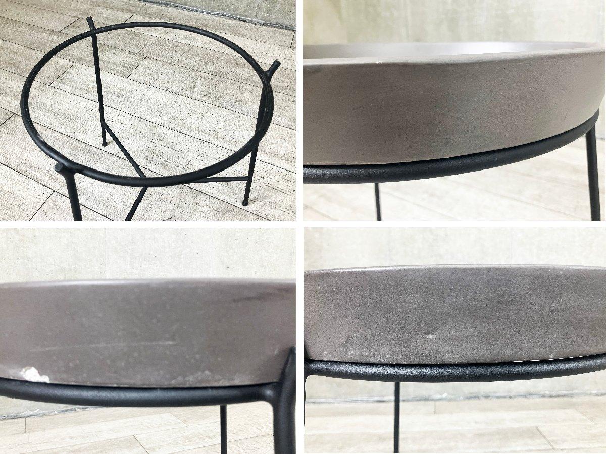 天板にコンクリートを使用した円形サイドテーブル。重厚感がありながら、細身のメタル脚により空間をすっきりと演出することができます。