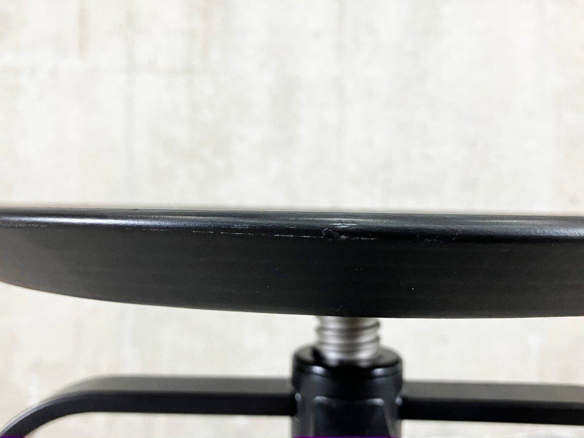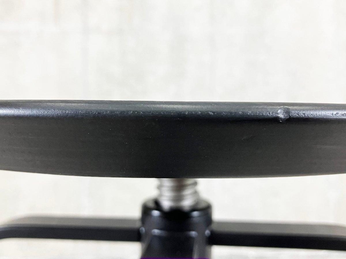 緩やかな凹みのあるスチール製の脚部が特徴的です。 座面を回転させることで座面高の調節が可能です。