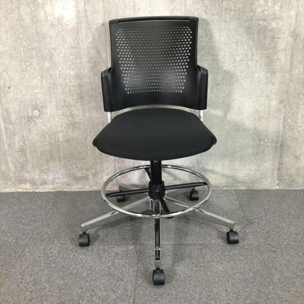 【在庫入替セール】【6脚限定】【熱がこもらない背もたれメッシュ構造!5本脚キャスター付で移動が楽々!】■プラス(plus)製 チェダーC 肘無カウンターチェア ■ブラック ■5本脚キャスター付- 神戸・三宮店
