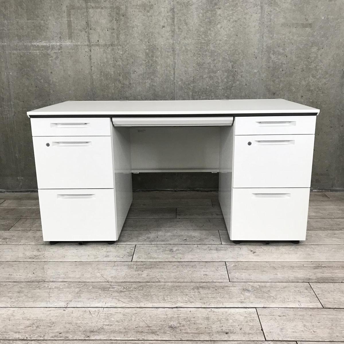 【在庫入替セール】コクヨ iSシリーズ 両袖机 W1400の定番サイズ ホワイト 鍵付き シリンダー錠 両側の引き出しで大容量の収納が可能 【愛知・名古屋・豊田・静岡・浜松】