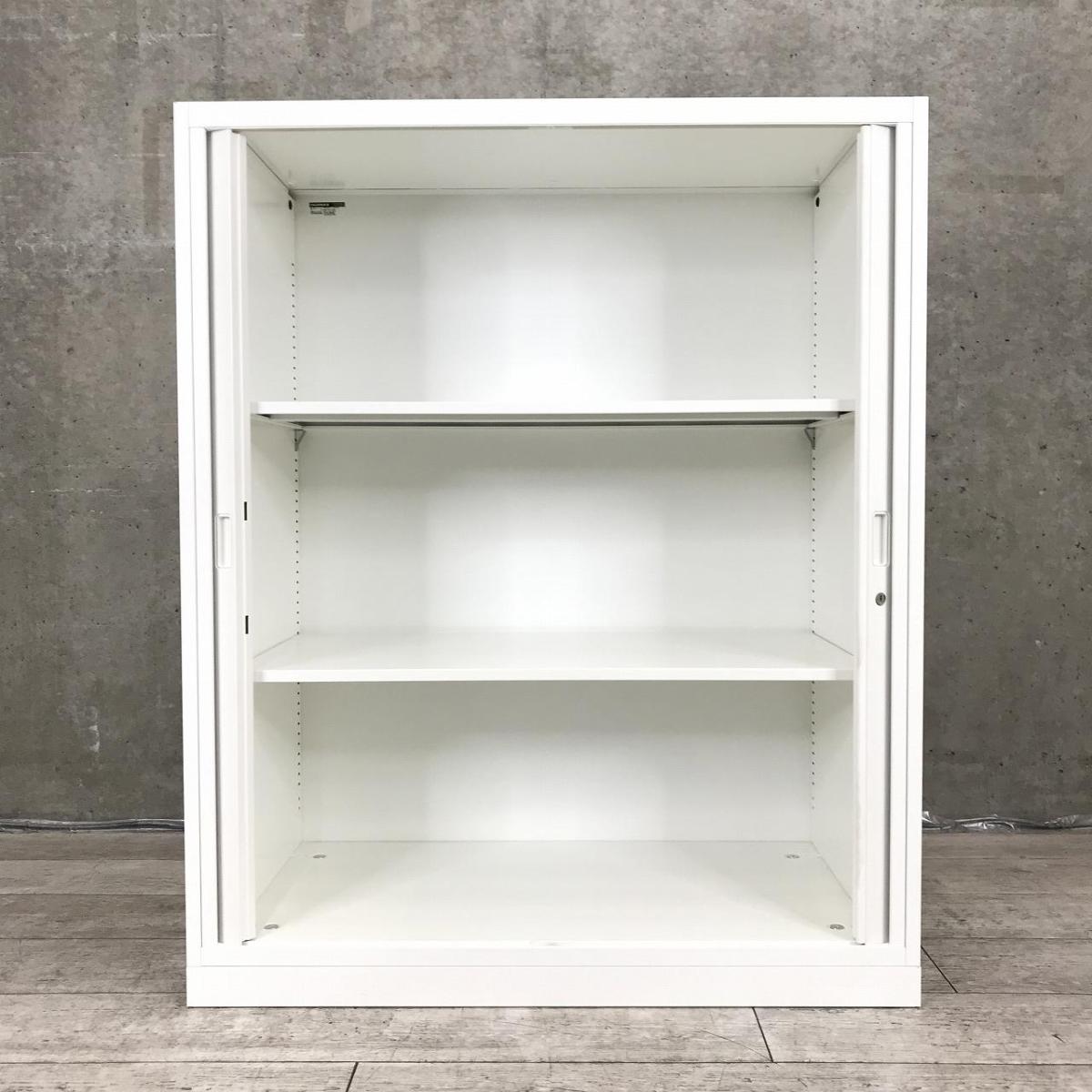 【珍しいシャッター式書庫が入荷!扉が書庫内に収まるため導線の邪魔になりません!】■オカムラ(okamura) レクトラインシリーズ シャッター式書庫 W900×D450㎜ ■シリンダー錠 ■ホワイト ※ベース付【AD】在庫がある店舗一覧