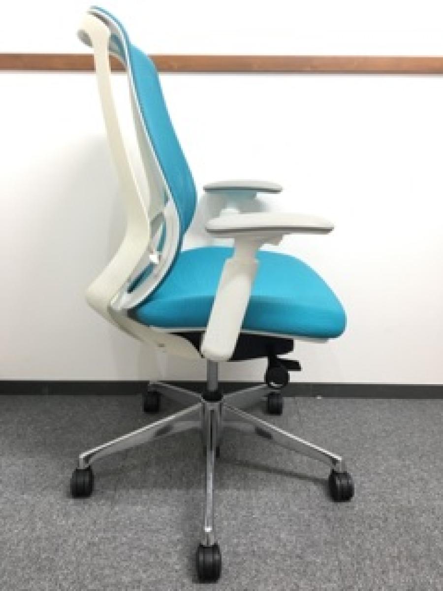 【三次元曲面が身体にフィット!前傾チルト機能付き大人気メッシュチェア!】■オカムラ(okamura)製 シルフィーチェア(Sylphy) 肘付きハイバック ■背面メッシュ ■可動肘 ■ブルーグリーン×ホワイトシェル