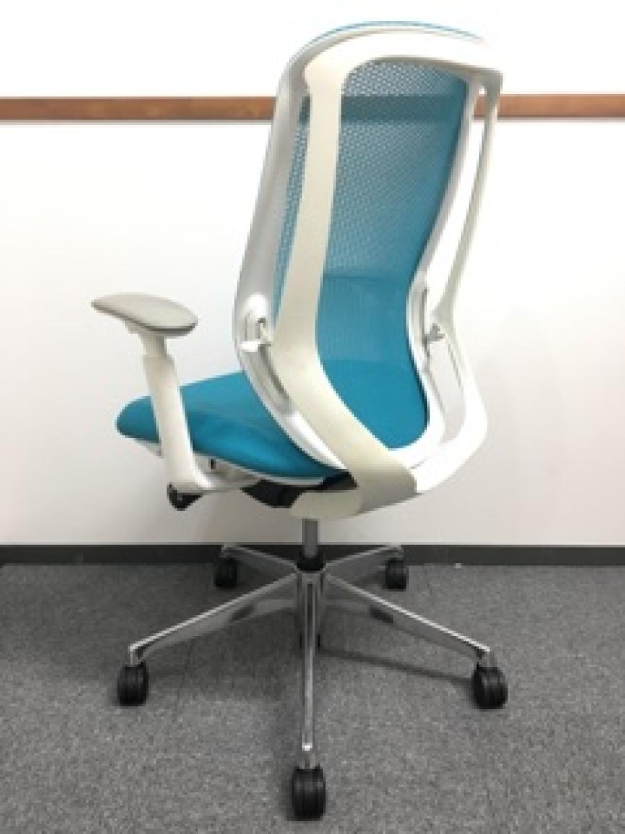 三次元曲面が身体にフィット!前傾チルト機能付き大人気メッシュチェア! ■オカムラ/シルフィーチェア(Sylphy)/ブルーグリーン×ホワイトシェル 肘付ハイバック ■背面メッシュ ■肘無し