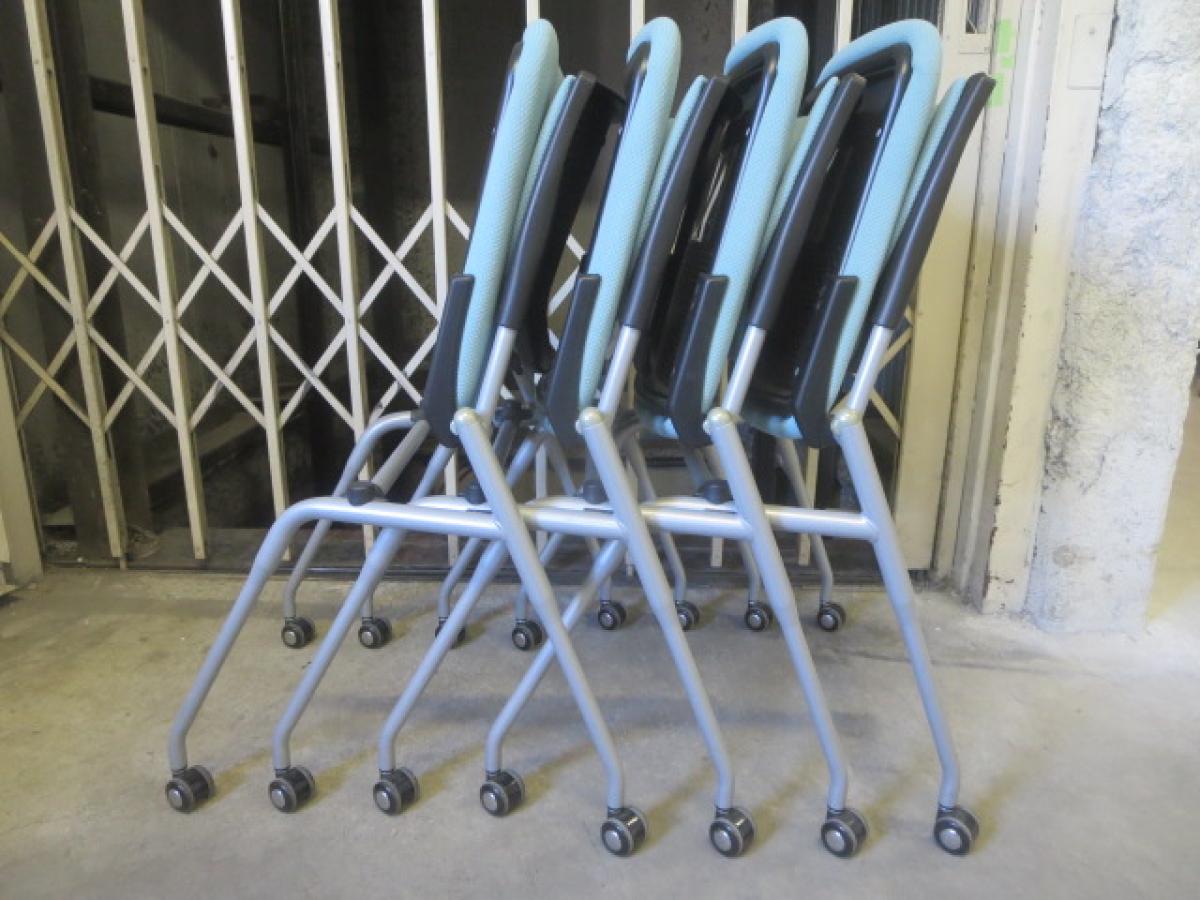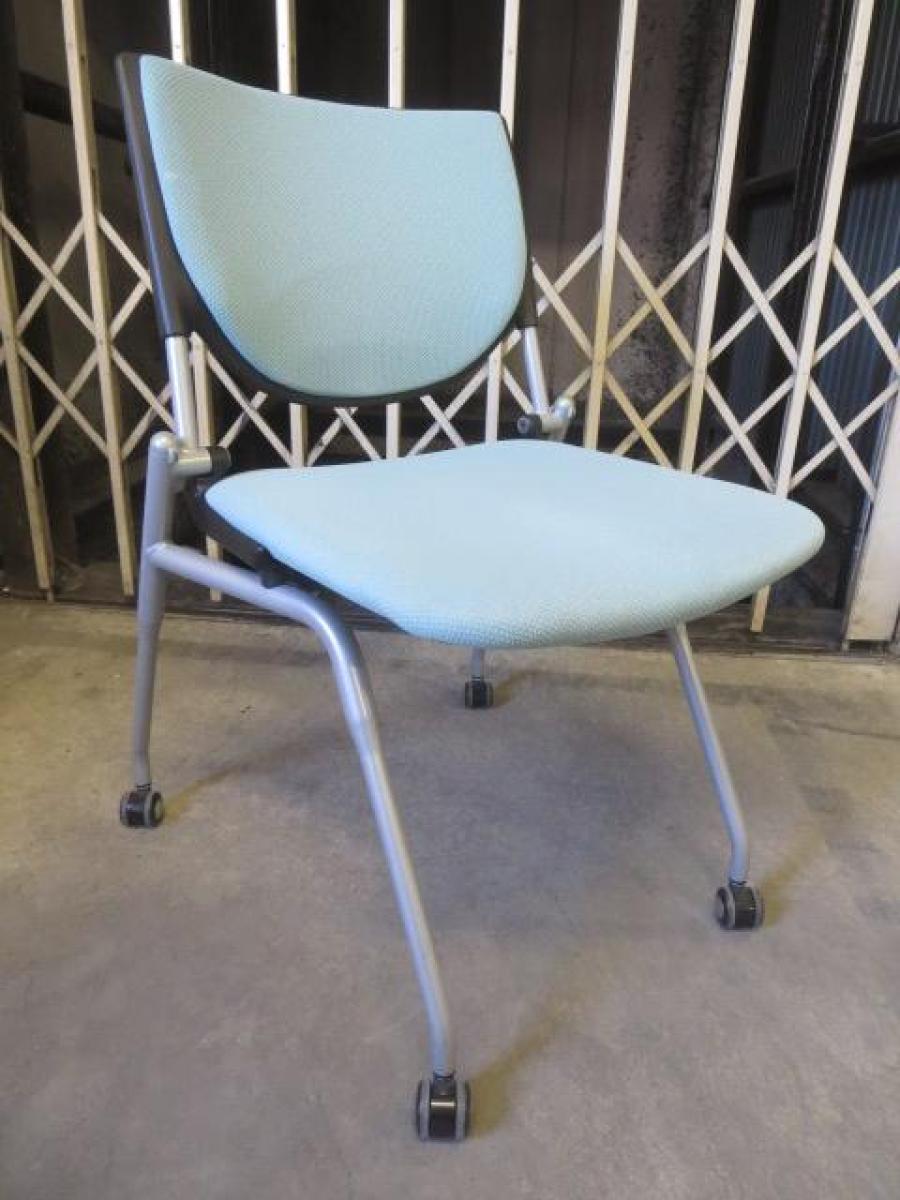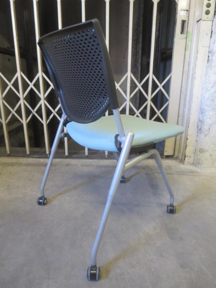 【フレキシブルに使えるキャスター付!】■オカムラ プロスタックシリーズ ネスティングチェア 背座カラー:セージ 背パッドタイプ ブラックシェル シルバーフレーム- 川崎店