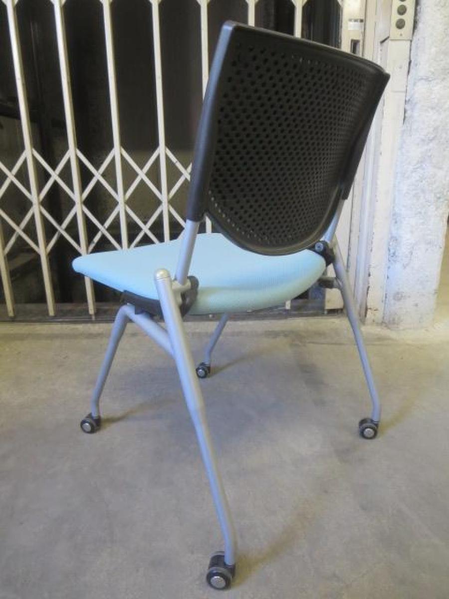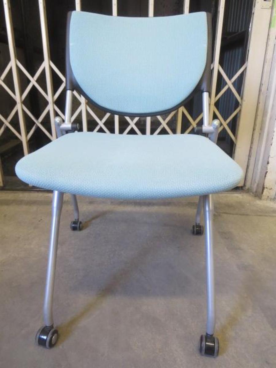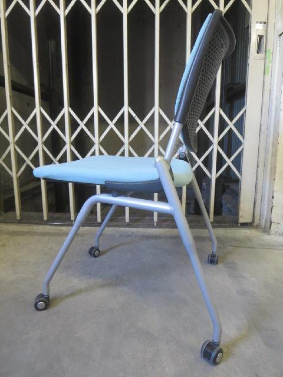 【フレキシブルに使えるキャスター付!】■オカムラ プロスタックシリーズ ネスティングチェア 背座カラー:セージ 背パッドタイプ ブラックシェル シルバーフレーム- 川崎店