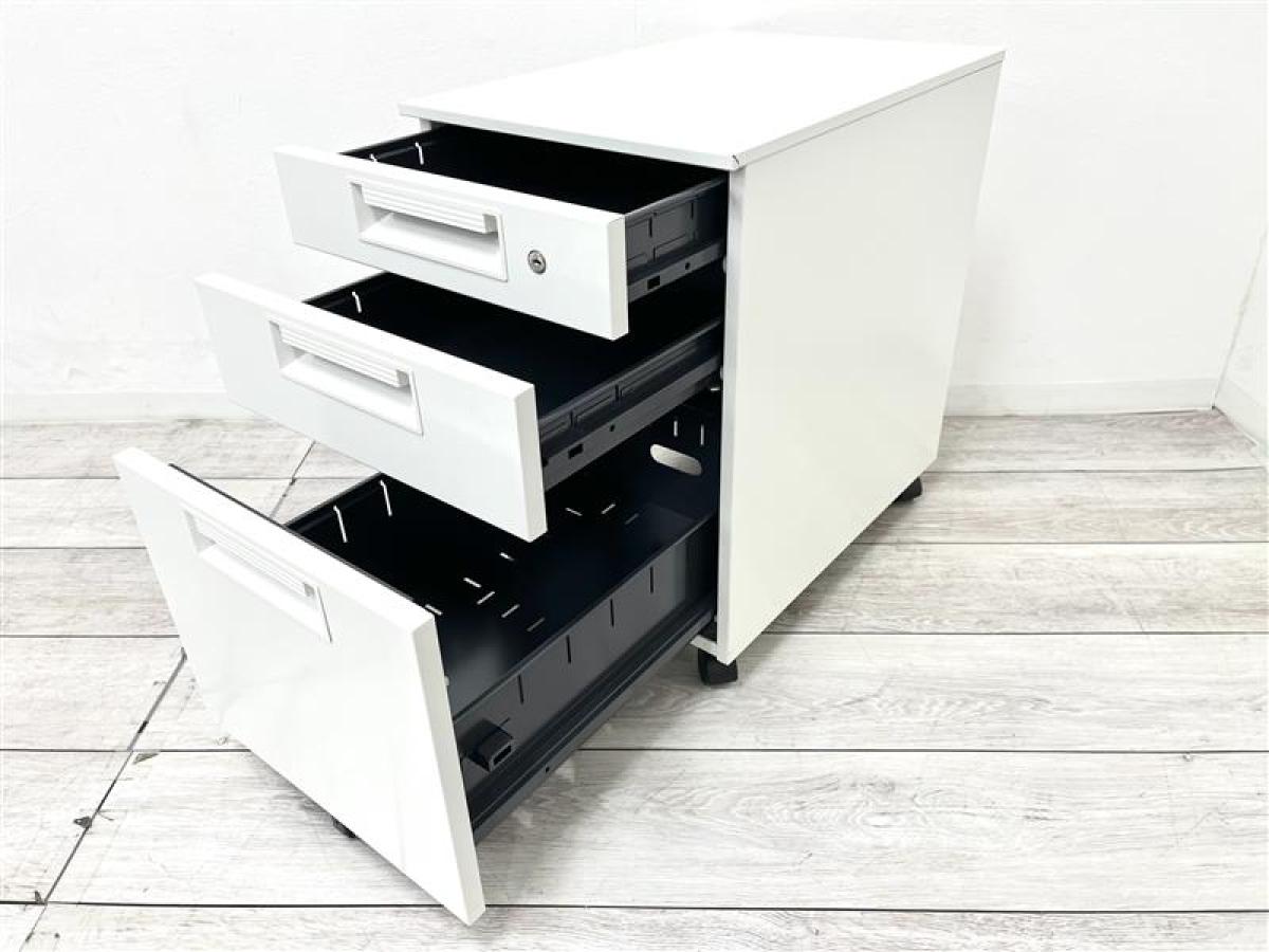 オフィスに馴染みやすいシンプルなデザインのデスクとワゴン!