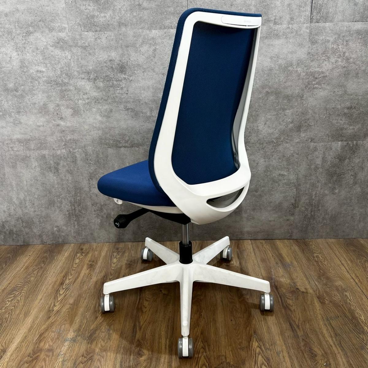 ★【K12】【T10】【K8】【商品入替のため、残り5脚限り】【23年製】オカムラ製 ポータム ブルー ホワイトフレーム 背面メッシュ コートハンガー 座面前後調整 肘無しハイバックチェア!!