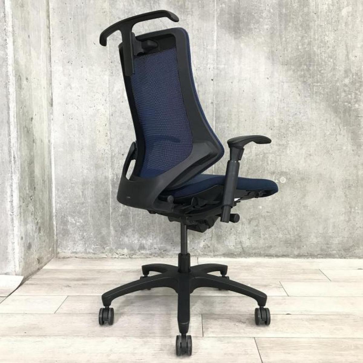 【姿勢の変化にフレキシブルに対応!スタイリッシュで座り心地も抜群な高機能チェア!】■イトーキ(ITOKI)製 エフ(f)チェア 肘付き ハイバック 背面メッシュ ■可動肘 ■ネイビーブルー ×ブラックシェル【2510】弊社使用欄【A01040263】