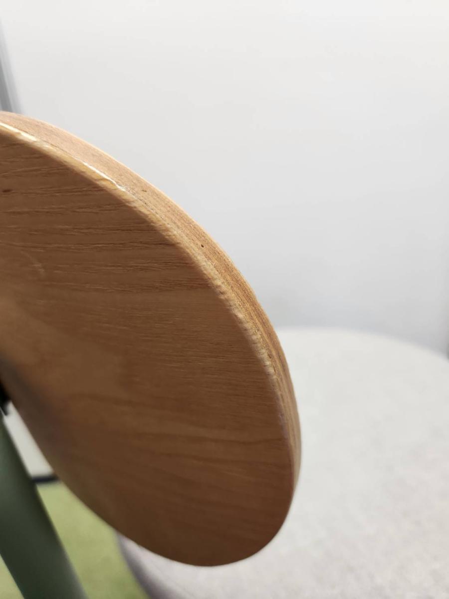 - あり黄ばみ・変色が広い範囲にうっすらある、または濃い黄ばみ・変色が一部ある。(例、座面・背もたれ、脚部等にある。)