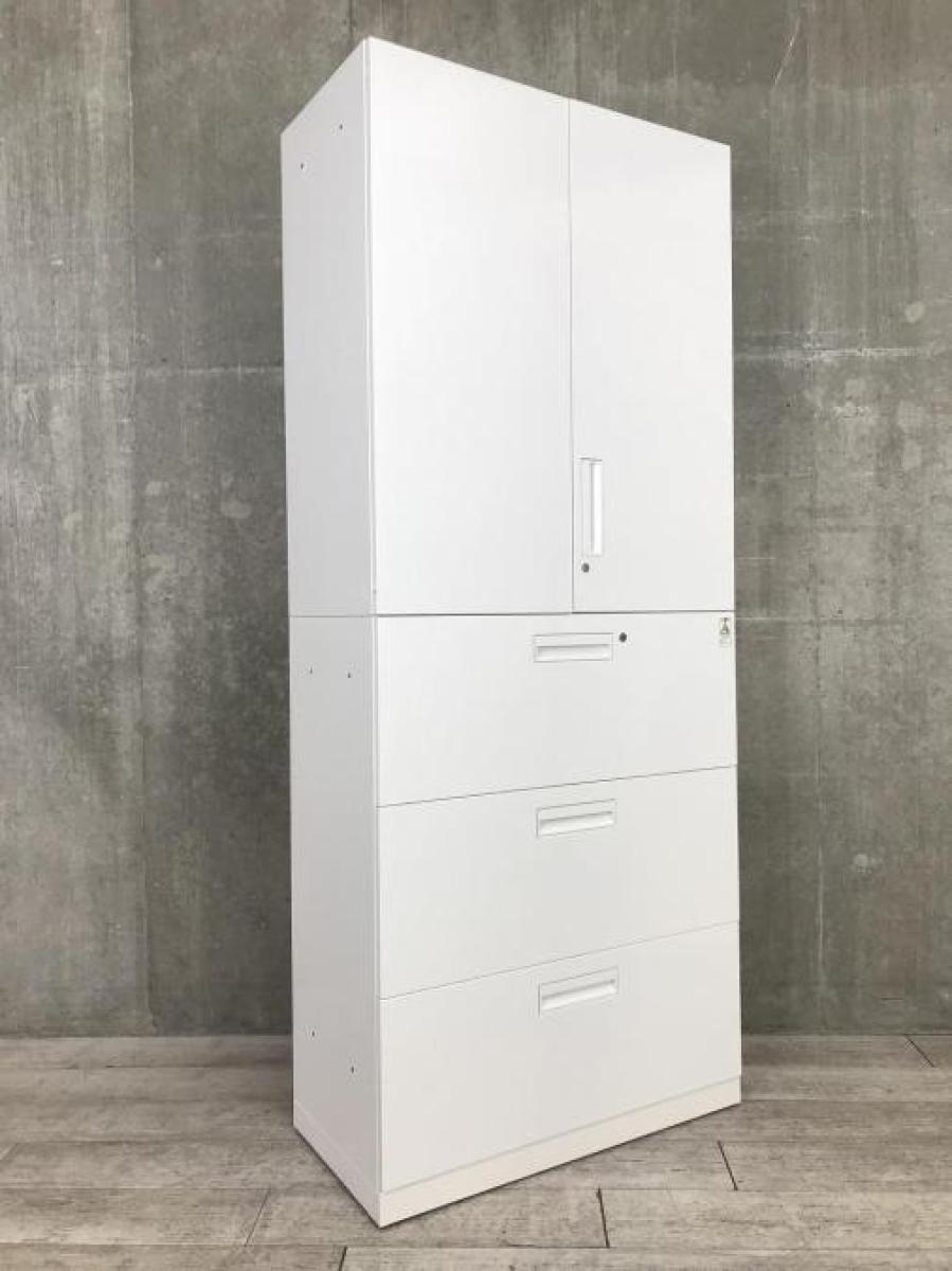 【限定1台】【在庫入替品】【収納の定番!エディアシリーズ!収納量抜群!観音開き+引き出しタイプのキャビネットセット!】■コクヨ(KOKUYO)製 エディアシリーズ ハイキャビネット 両開き+3段ラテラル ■ホワイト ■シリンダー鍵 ※ヘコミ有 【K】- 神戸・三宮店