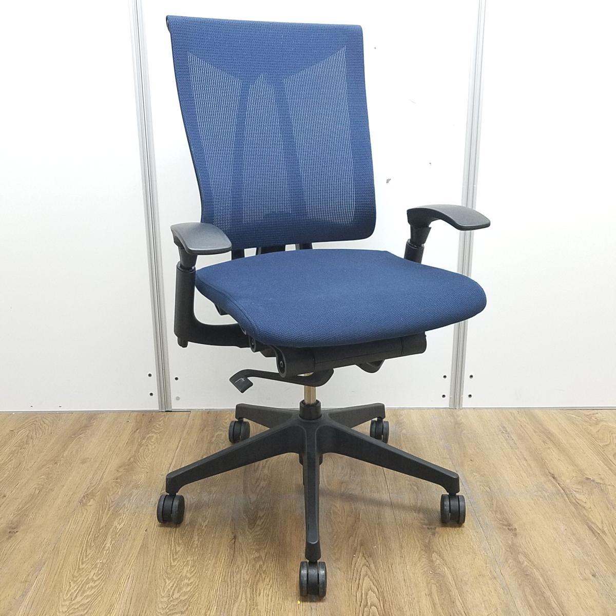 【T9】【商品入替のため、残り4脚限り】イトーキ製 セレーオシリーズ ネイビーブルー メッシュ背面 ブラックフレーム アジャスタブル※可動肘 ハンガー付 座るとわかる快適さ・骨盤にしっかりフィットする! チェア自らが動き座る人の体を支える「おもてなし」の心を体現した高級チェア! 肘付きハイバックチェア!!- 京都東寺店