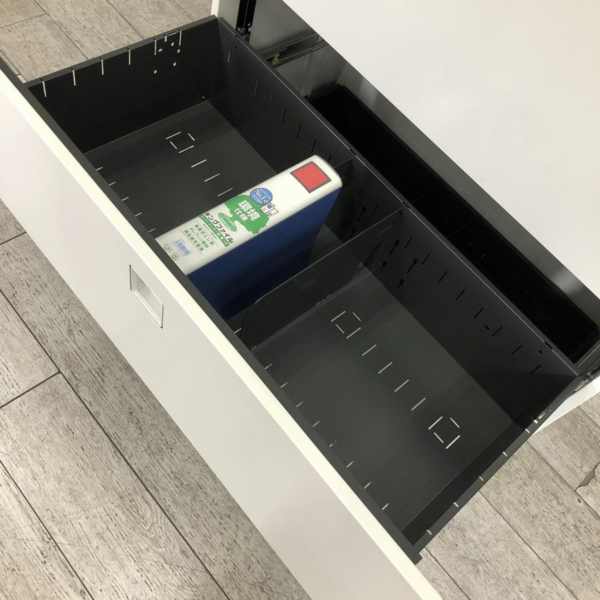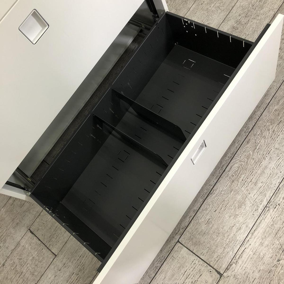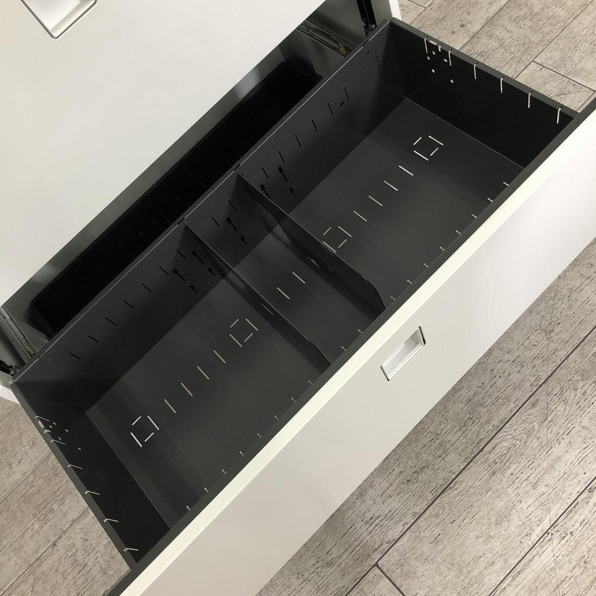 【天板付きなのでカウンターとしても使える!大容量の三段キャビネッ!ト】■オカムラ(okamura)製 レクトラインシリーズ 3段ラテラル書庫 ■シリンダー錠 ■ホワイト 【弊社使用欄:A01059739】