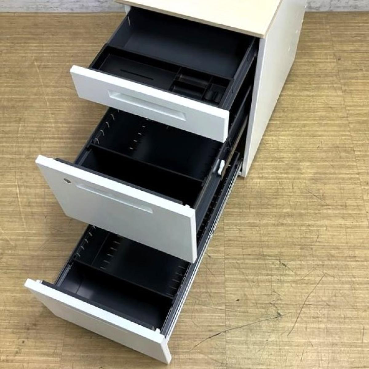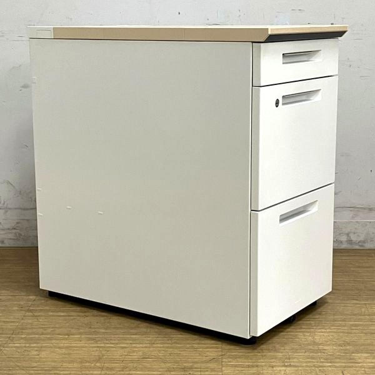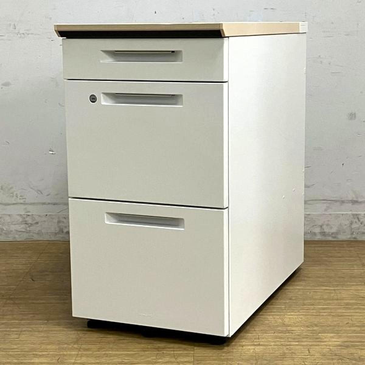 【在庫入替セール】コクヨ iSデスクシステム 3段脇机 天板:ホワイトナチュラル 本体:ホワイト 鍵付き シリンダー錠【愛知・名古屋・豊田・静岡・浜松】- 名古屋千種店