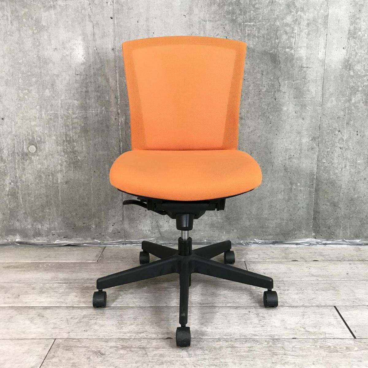 【関西倉庫在庫品】■コクヨ/バリシア 肘無ローバック ■マンダリンオレンジ ■ブラックフレーム ■背もたれメッシュ- 新大阪店