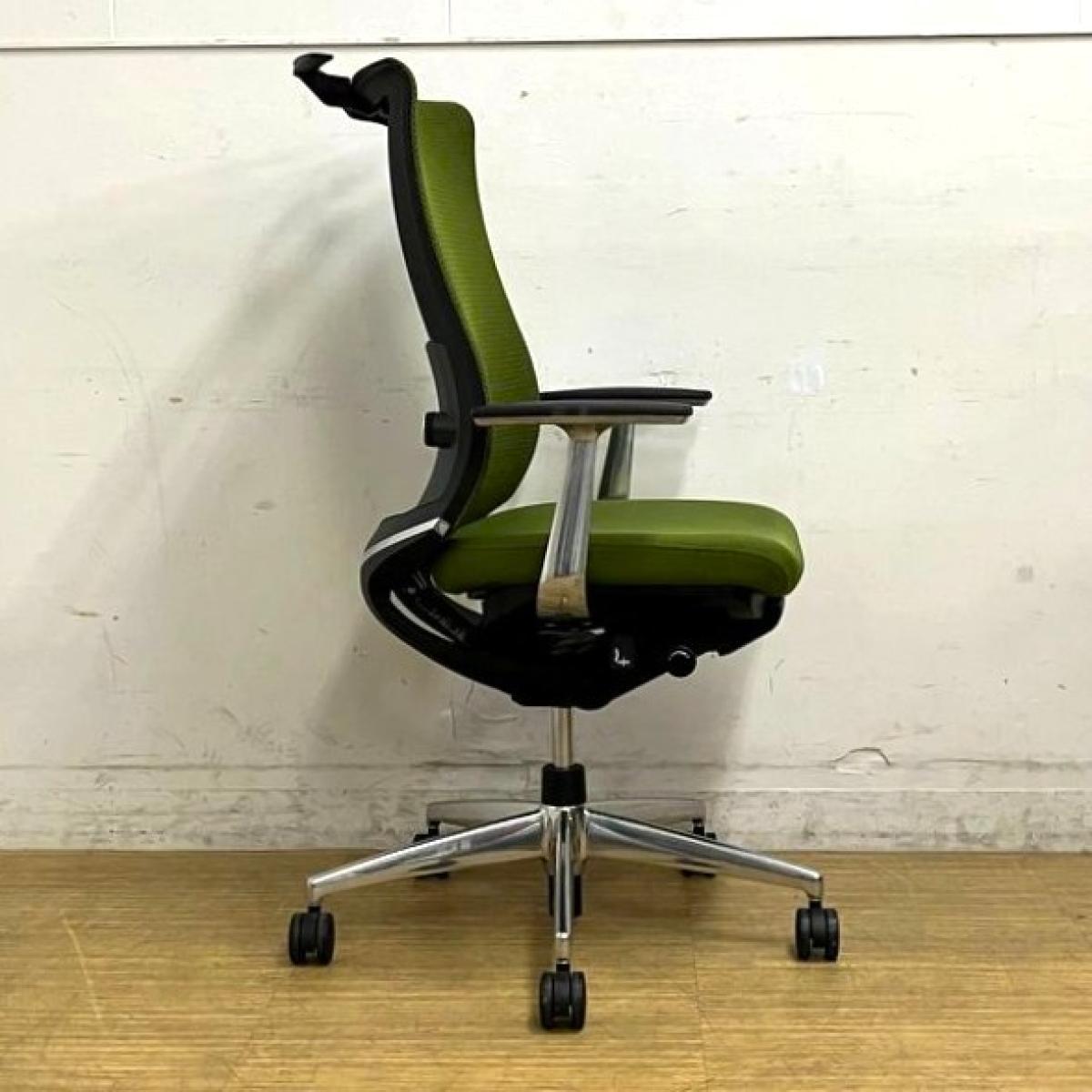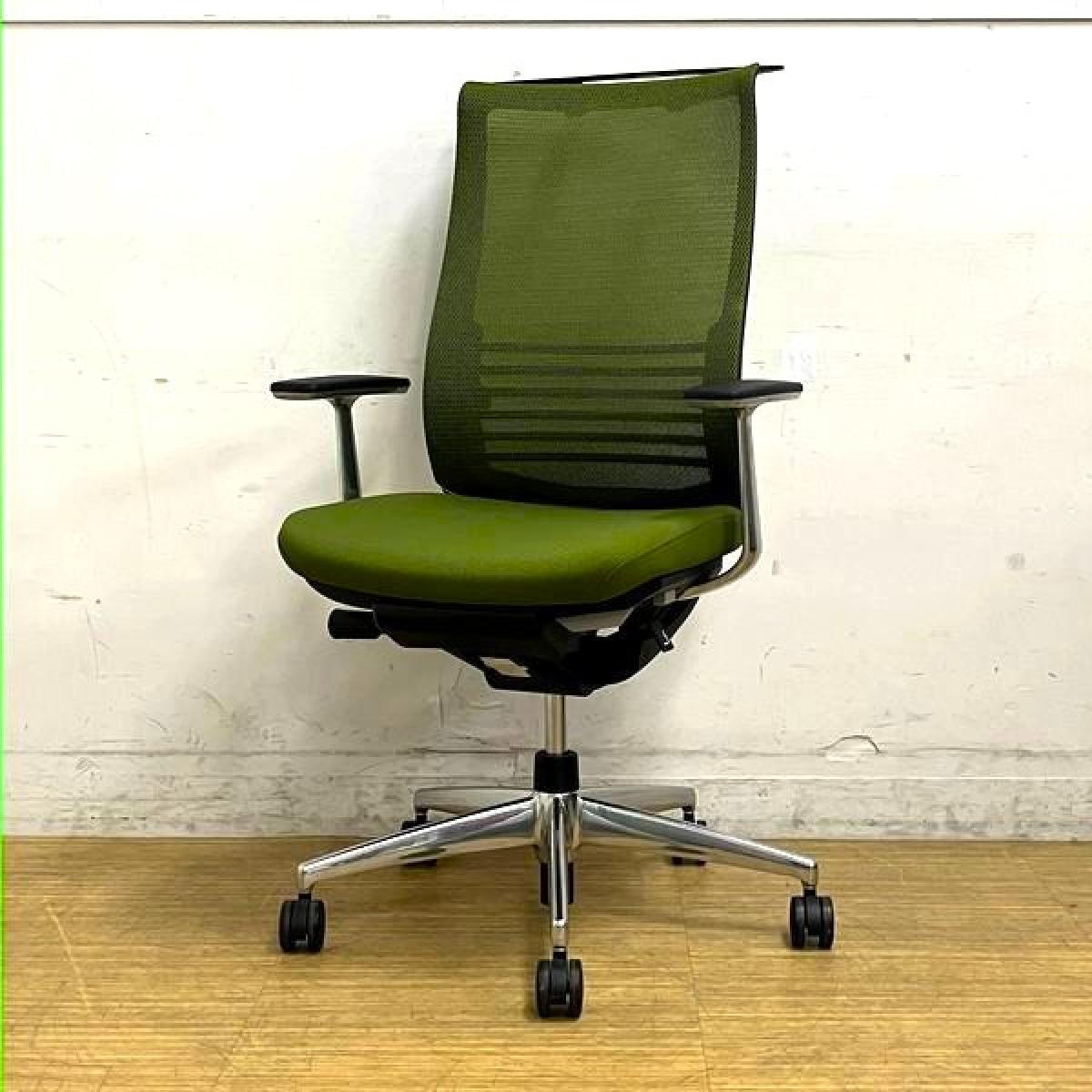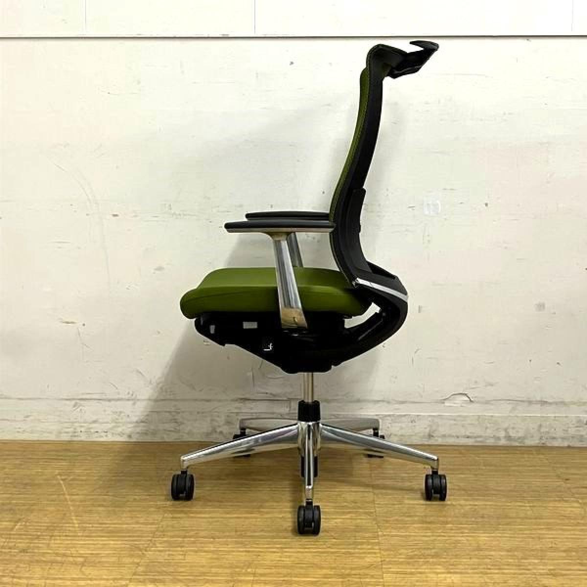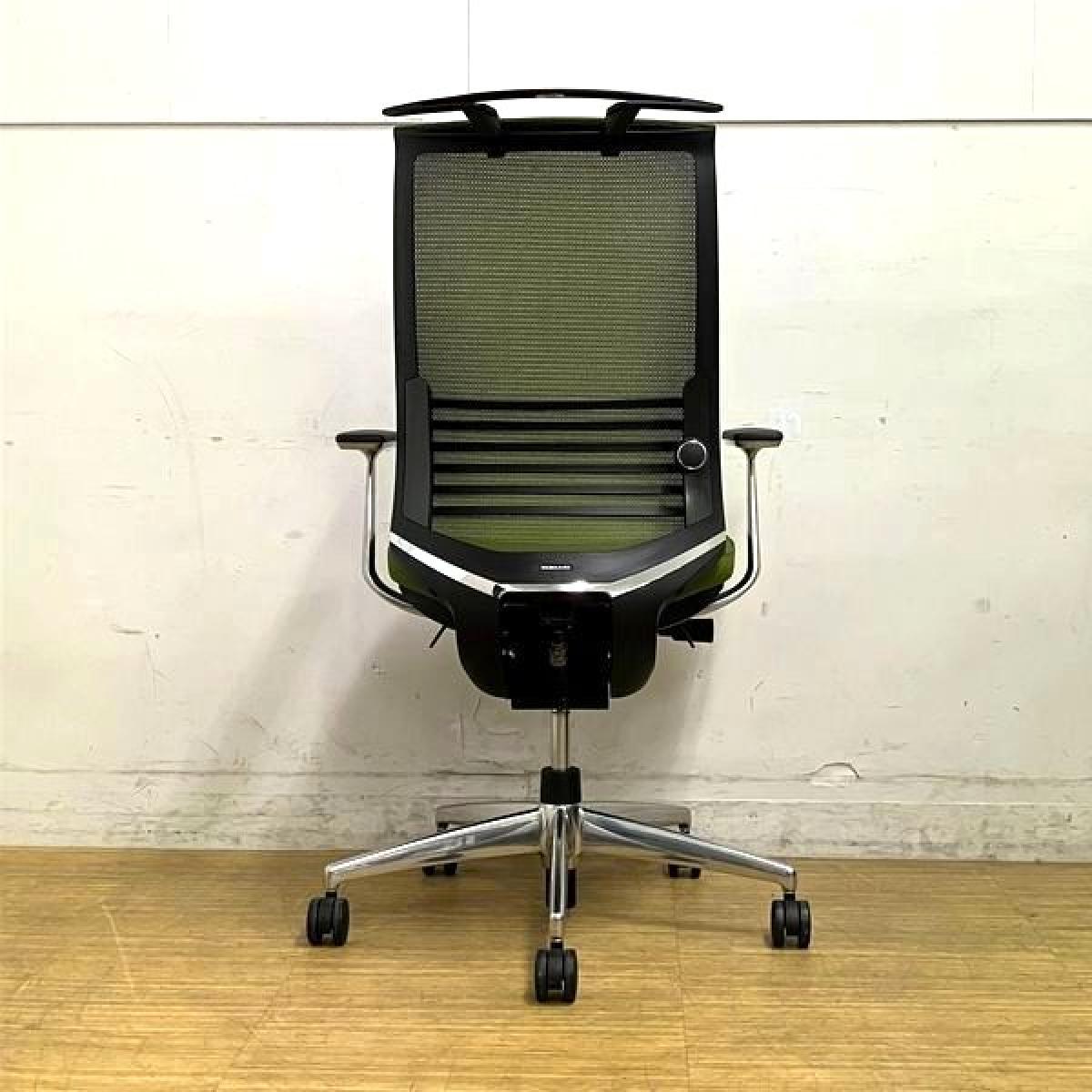 【関西倉庫在庫品】■コクヨ/ベゼル 肘付ハイバック ■オリーブグリーン ■ブラックフレーム ■ポリッシュ脚 ■アルミ肘(固定肘) ■コートハンガー付き- 新大阪店
