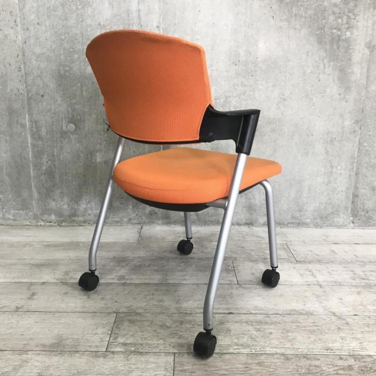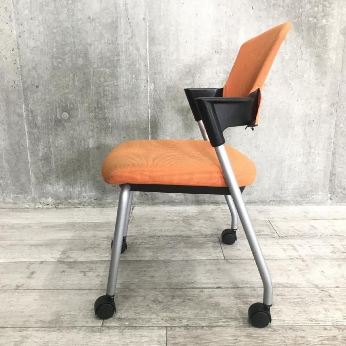 【シンプルスマートなスタッキングチェア!】■コクヨ(KOKUYO) プロッティ(Protty)チェア スタッキングチェア ミーティングチェア ■肘付き キャスター付き ■オレンジ【2505】弊社使用欄【A01018053】