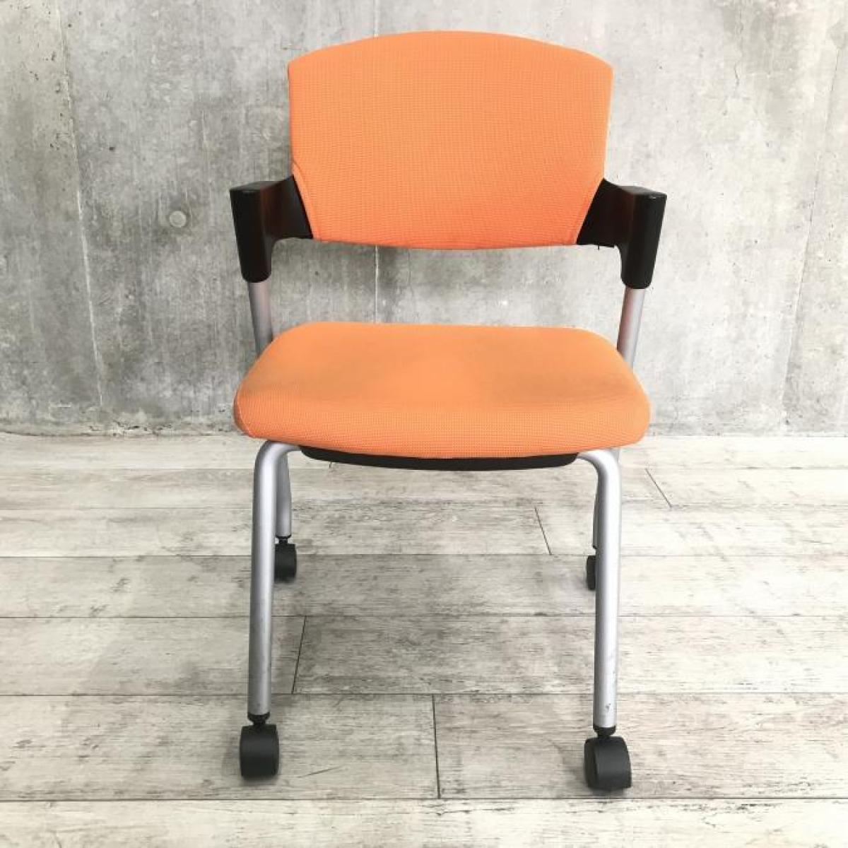 【シンプルスマートなスタッキングチェア!】■コクヨ(KOKUYO) プロッティ(Protty)チェア スタッキングチェア ミーティングチェア ■肘付き キャスター付き ■オレンジ- 名古屋本店
