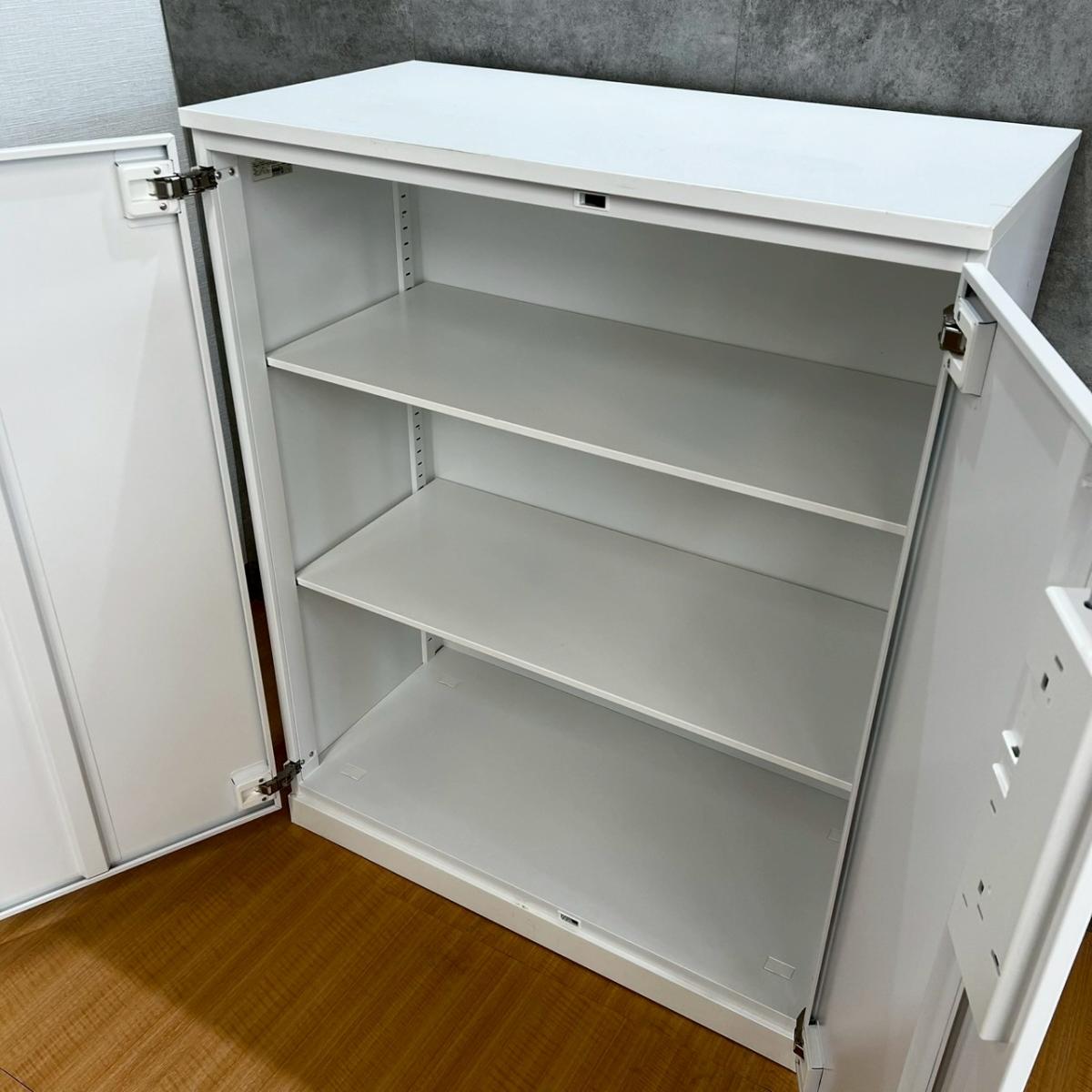 【収納物がひとめで分かる両開き戸タイプ!】■コクヨ(KOKUYO)製 エディア(EDIA)シリーズ 両開き書庫 ローキャビネット H1130㎜ ■天板・ベース付 ■ホワイト ■シリンダー錠
