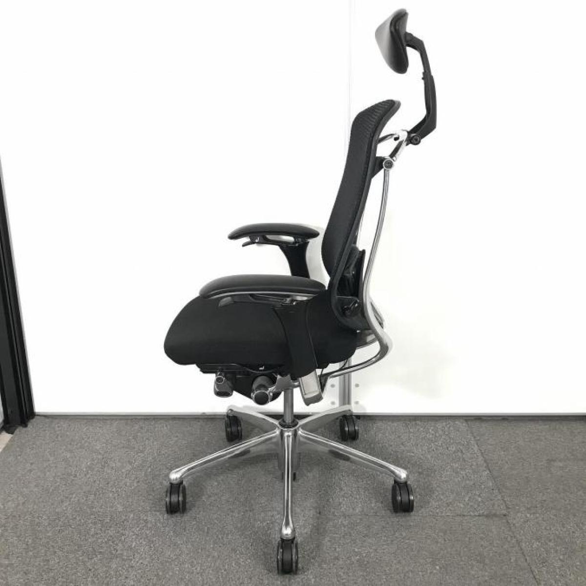 【世界で認められた革新的タスクチェア!人間工学に基づいた快適な座り心地を実現!】■オカムラ(okamura)製 コンテッサ(Contessa) ハイバック 肘付き ■可動肘 背面メッシュ ■ランバー付き ■ヘッドレスト付き ■ブラック- 茨城南店