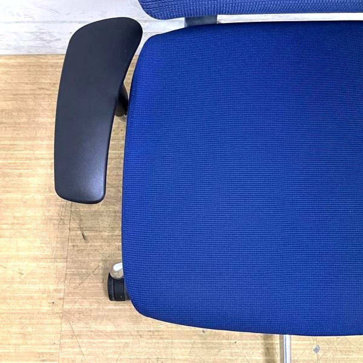 【ベストなポジションが得られる先進設計!長時間の着座でも疲れにくい!】■オカムラ バロンチェア 可動肘付 ブルー ※フレームに日焼けがあるためお安く! 【Okamura Baron】【在庫入替セール品!】