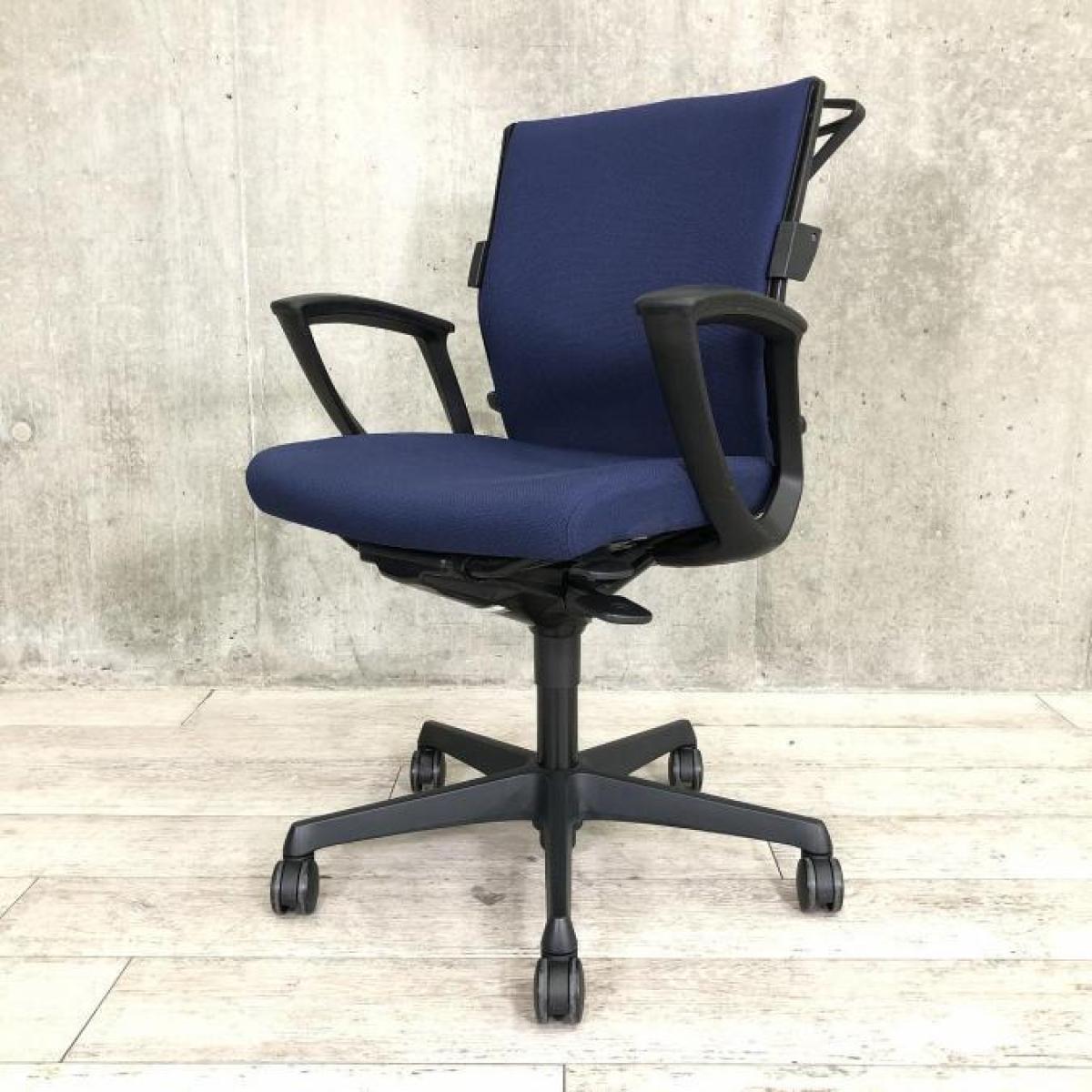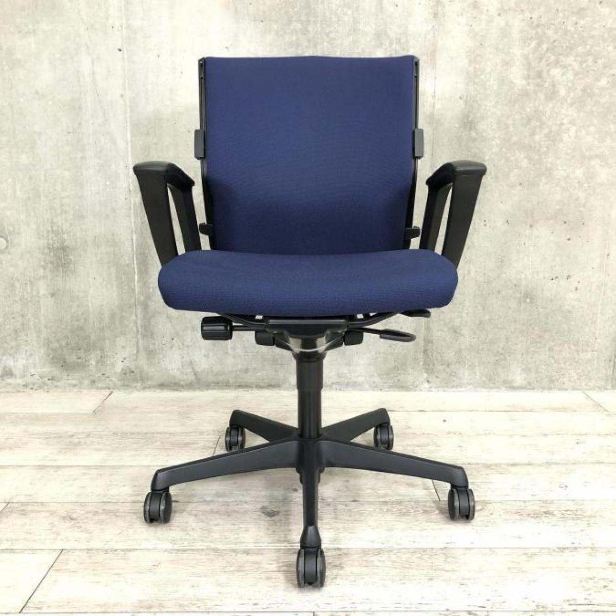 【関西倉庫在庫】■オカムラ(okamura)製 エスクードチェア 肘付ローバックチェア ■ダークブルー×グレーシェル ■デザインアーム ■ランバーサポート 【弊社使用欄:A01029268】