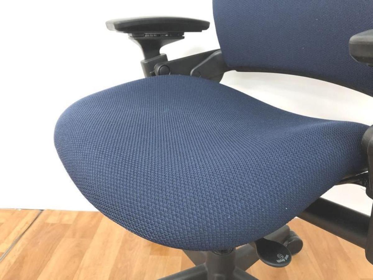 スチールケース製の可動肘付リープチェアのブルーカラーになります!!