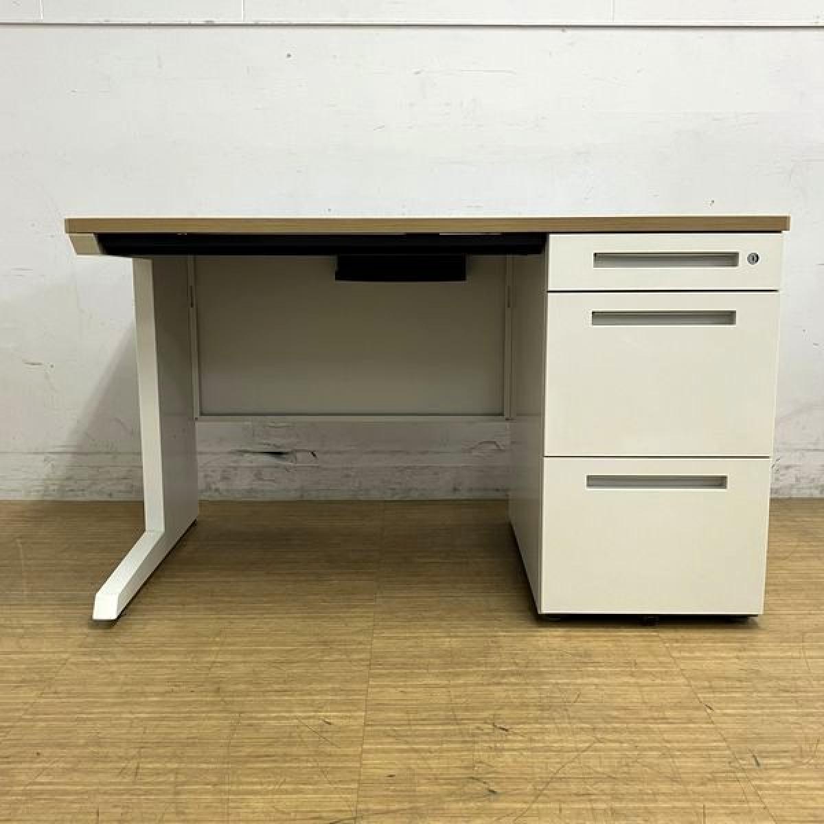 【在庫入替セール】【天板割れあり・部材一部欠けのため特価】イトーキ CZRシリーズ 片袖机 定番サイズのW1200 お洒落な木目天板(ファインウォールナットライト) 鍵付き シリンダー錠- 名古屋千種店