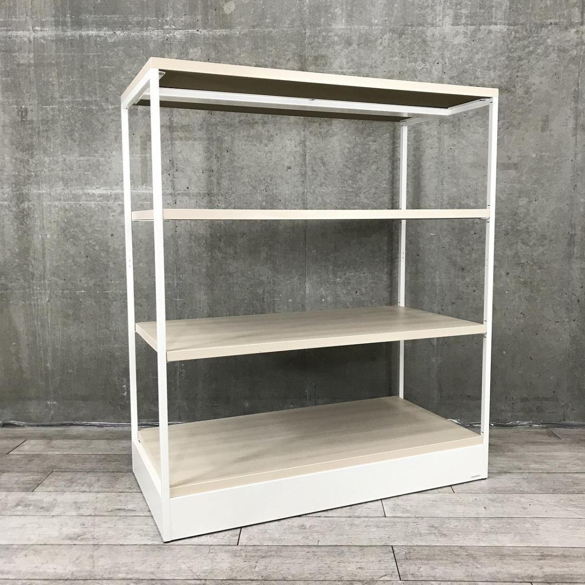 【在庫入替セール】オカムラ ライブスシェルフ おしゃれなオープン型ラック 棚板:プライズウッドナチュラル×フレーム:ホワイト オフィスカフェ- 名古屋千種店