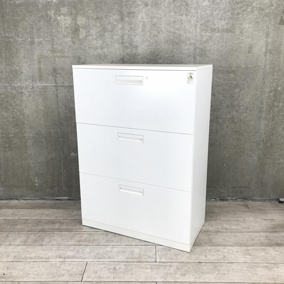 【2020年製】【収納力抜群の3段ラテラル書庫!A4書類が大量に収納可能!】■コクヨ(KOKUYO)製 エディア(EDIA)シリーズ 3段ラテラル ローキャビネット H1130㎜ ■天板・ベース付き ■ホワイト ■シリンダー錠【2511】弊社使用欄【A01044970】