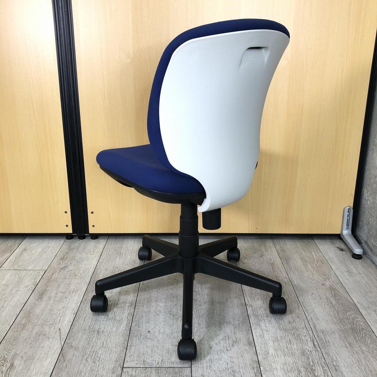 【シンプルなのに上質・座る人を選ばないフィット感!】■プラス製 (PLUS) プリセア (Presea) ローバック 肘無し ■ブルー × シェル ホワイト / 脚 ブラック- 大阪・堺店