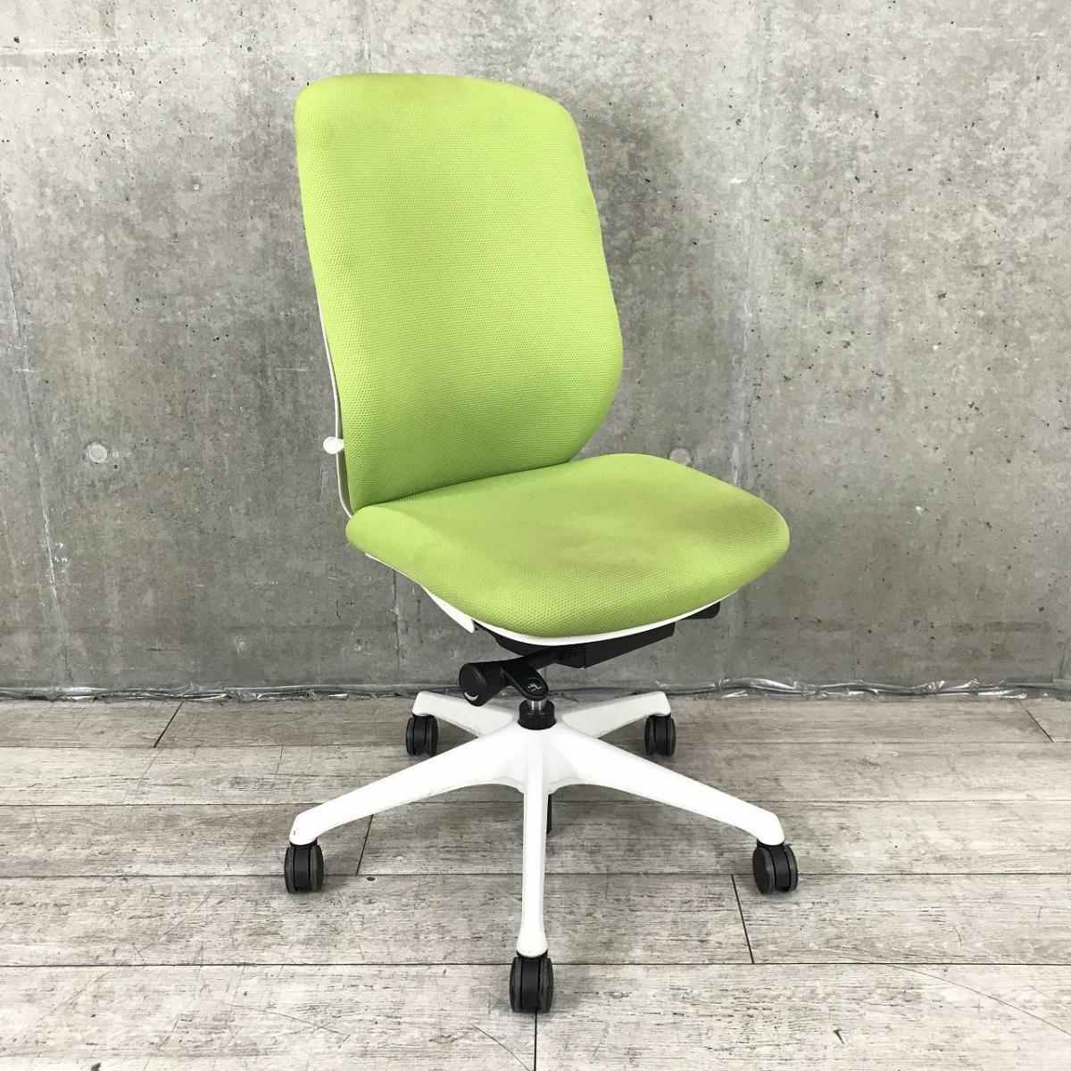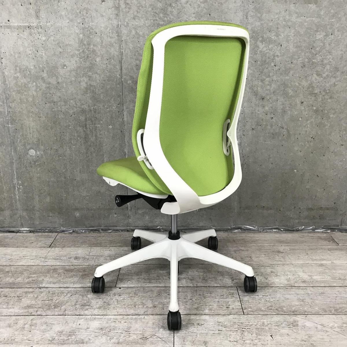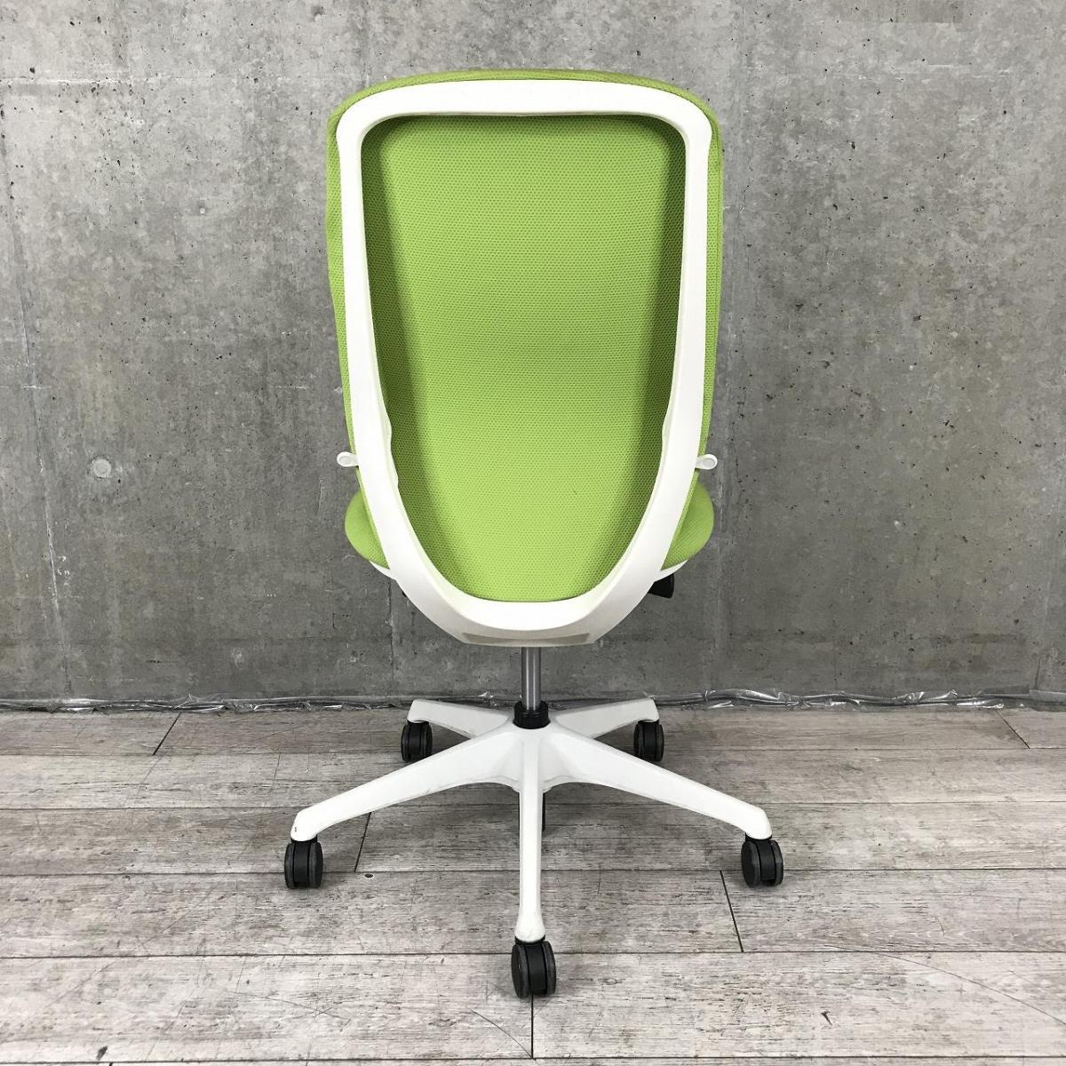 オカムラ製 シルフィーシリーズ ライムグリーン ホワイトフレーム 背面クッション コートハンガー付き 快適な座り心地を実現! 人気シリーズの背面クッションモデル! 肘無しハイバックチェア!!