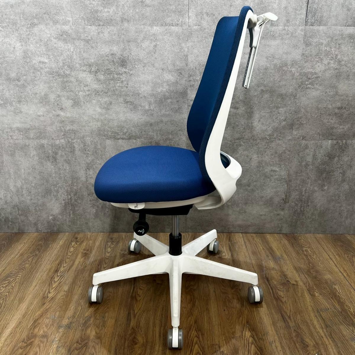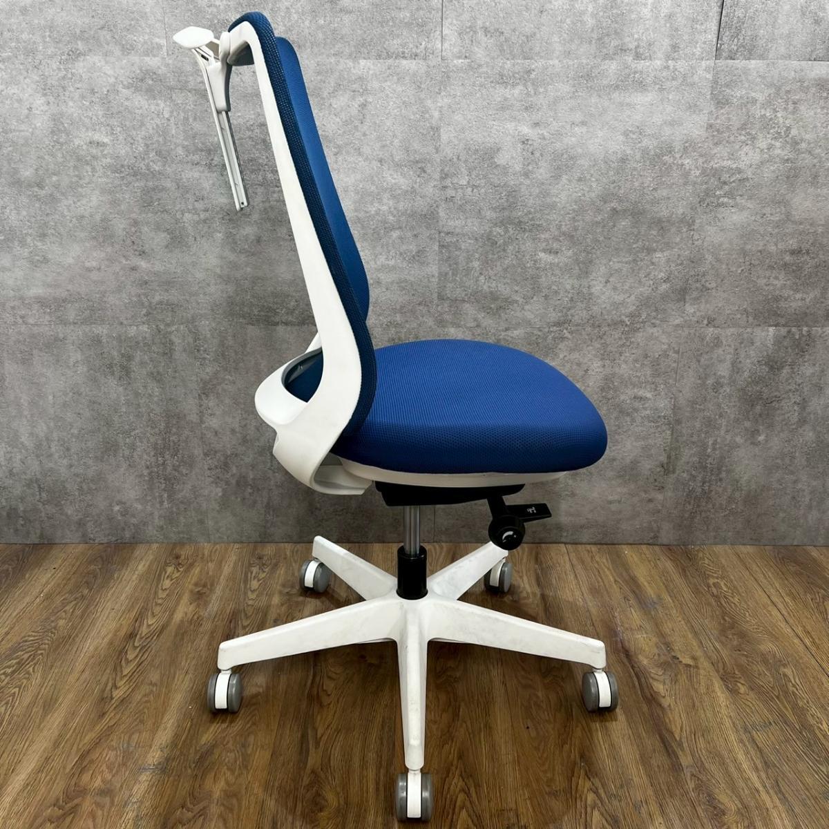 ★【K12】【T10】【K8】【商品入替のため、残り7脚限り】【23年製】オカムラ製 ポータム ブルー ホワイトフレーム 背面メッシュ コートハンガー 座面前後調整 肘無しハイバックチェア!!