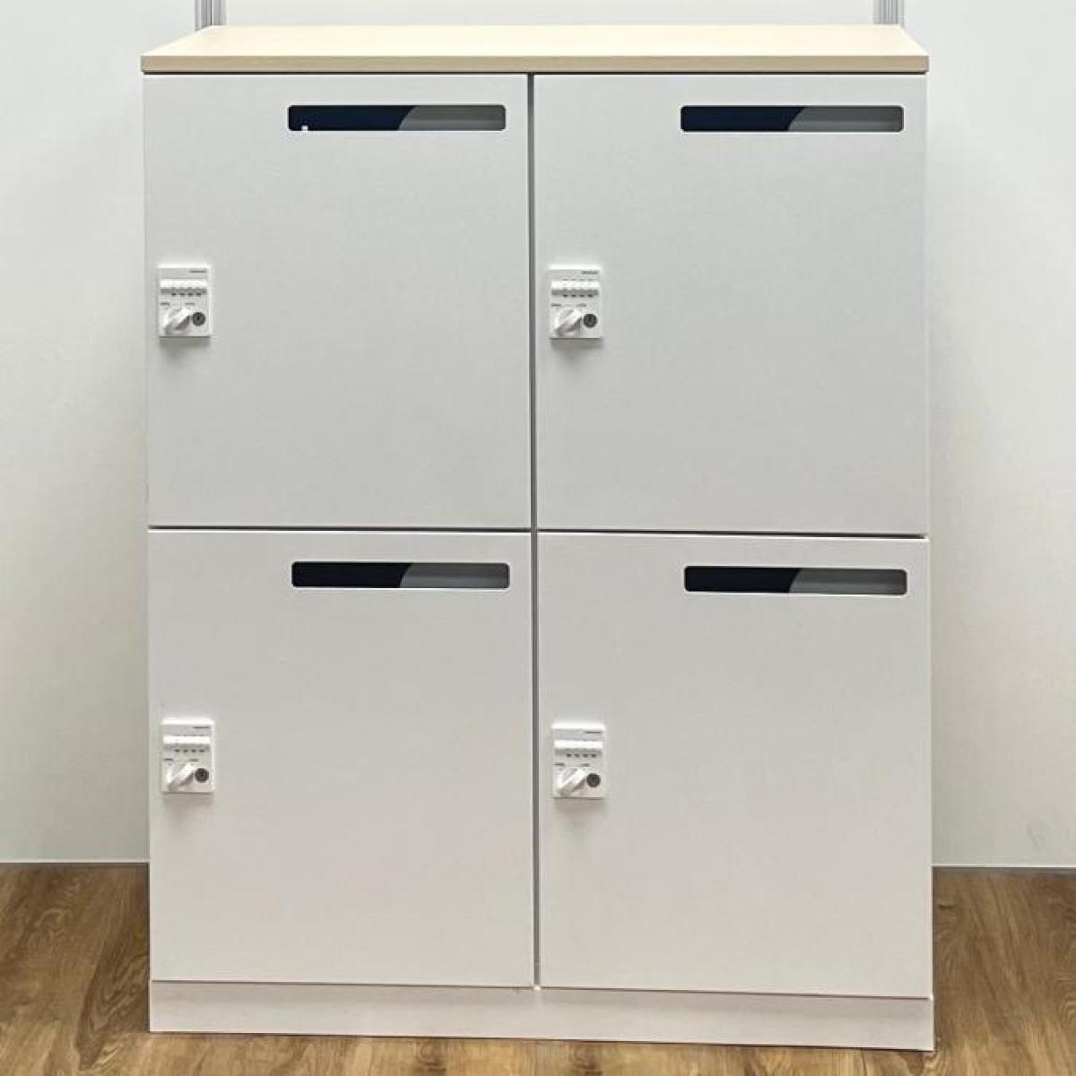 【鍵の持ち歩き不要のダイヤル錠タイプ!】■コクヨ(KOKUYO)製 エディアシリーズ 4人用メールロッカー パーソナルロッカー ■ダイヤル錠タイプ ■投函口付 ■ホワイト ■木目天板付き【フレキシブルな働き方に対応!フリーアドレスオフィスの必需品!】- 大阪・堺店