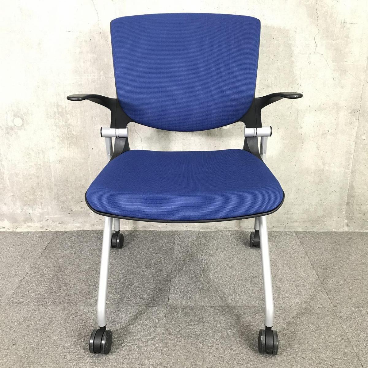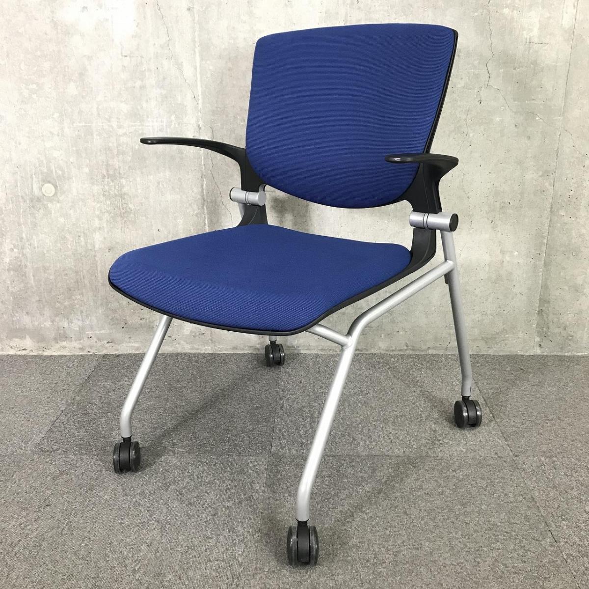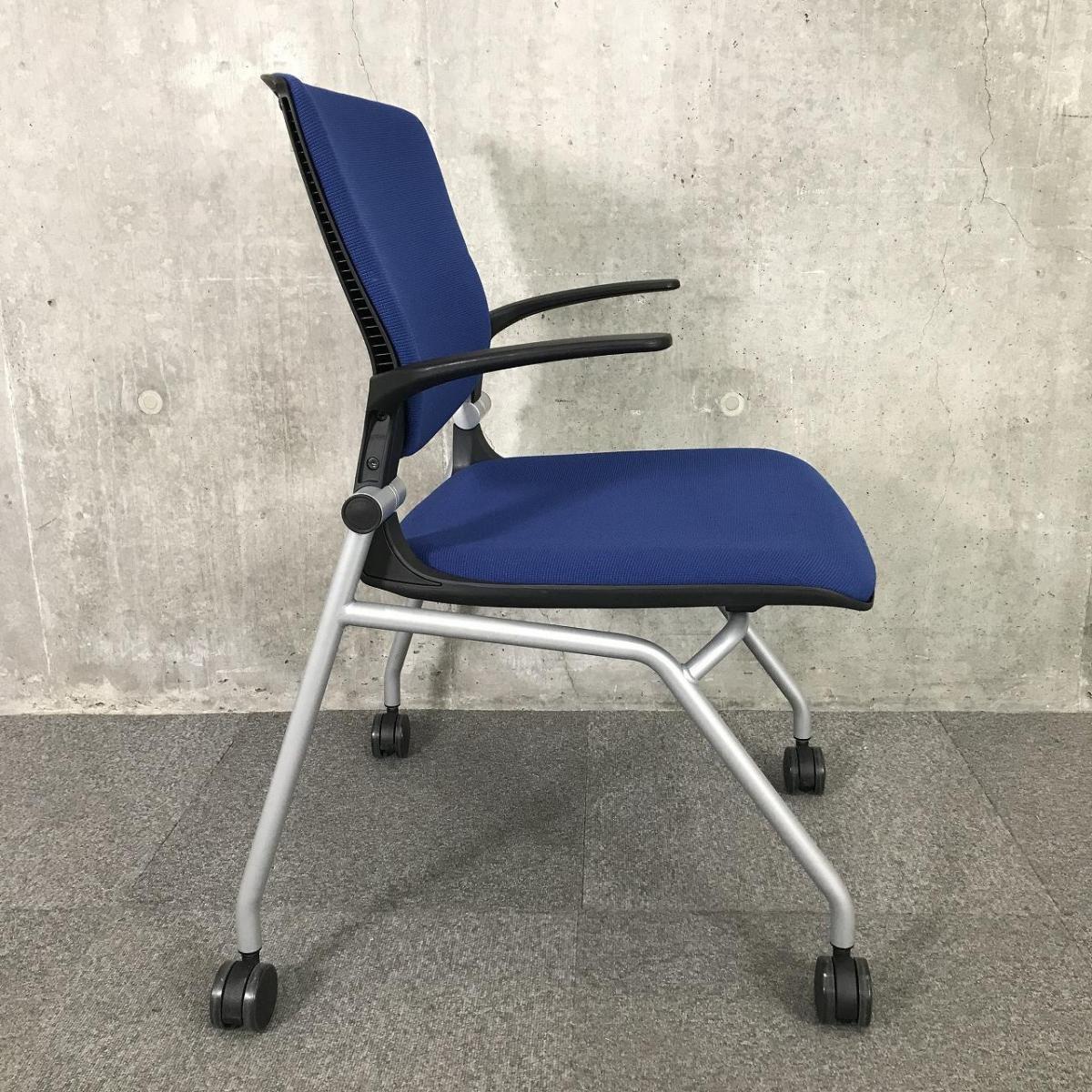 小肘付ネスティングチェア/背面クッション付き/ネイビー/オカムラ製/福岡/天神/博多/中古/安い