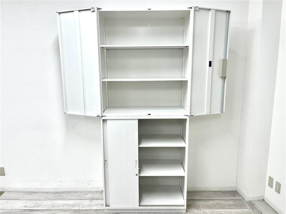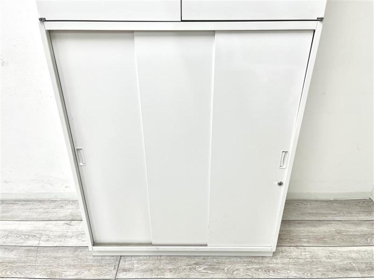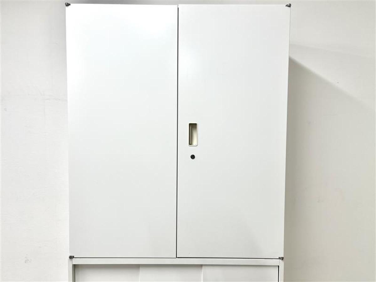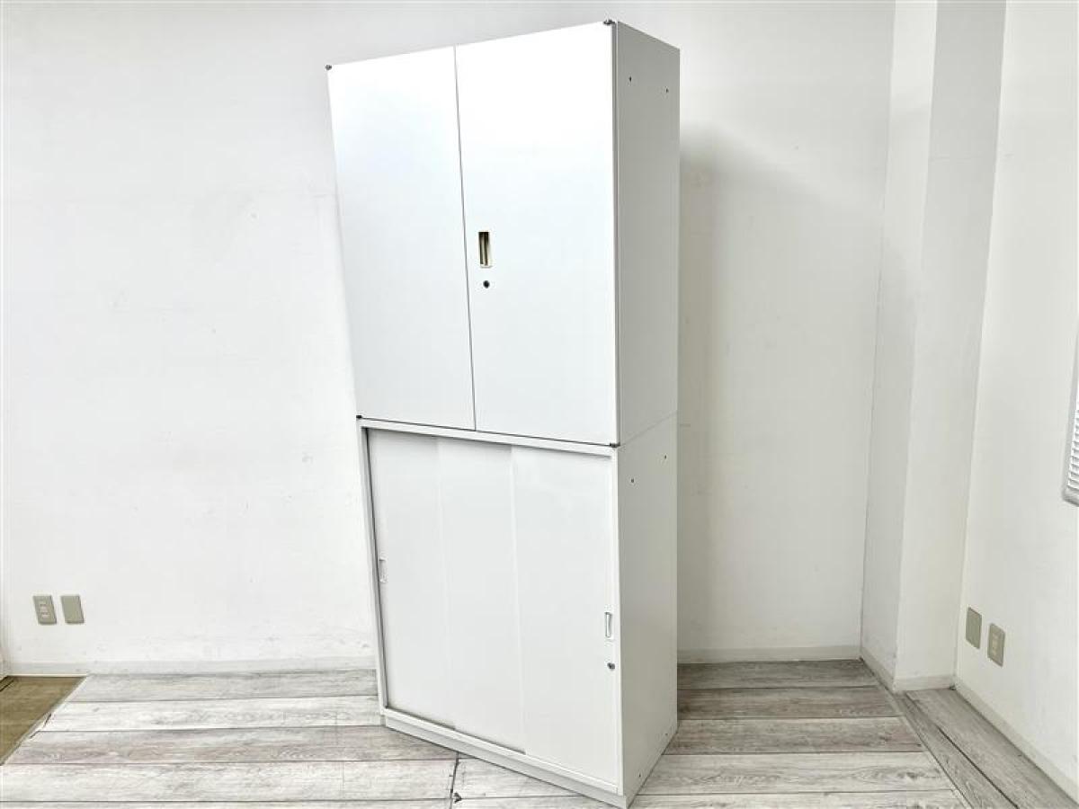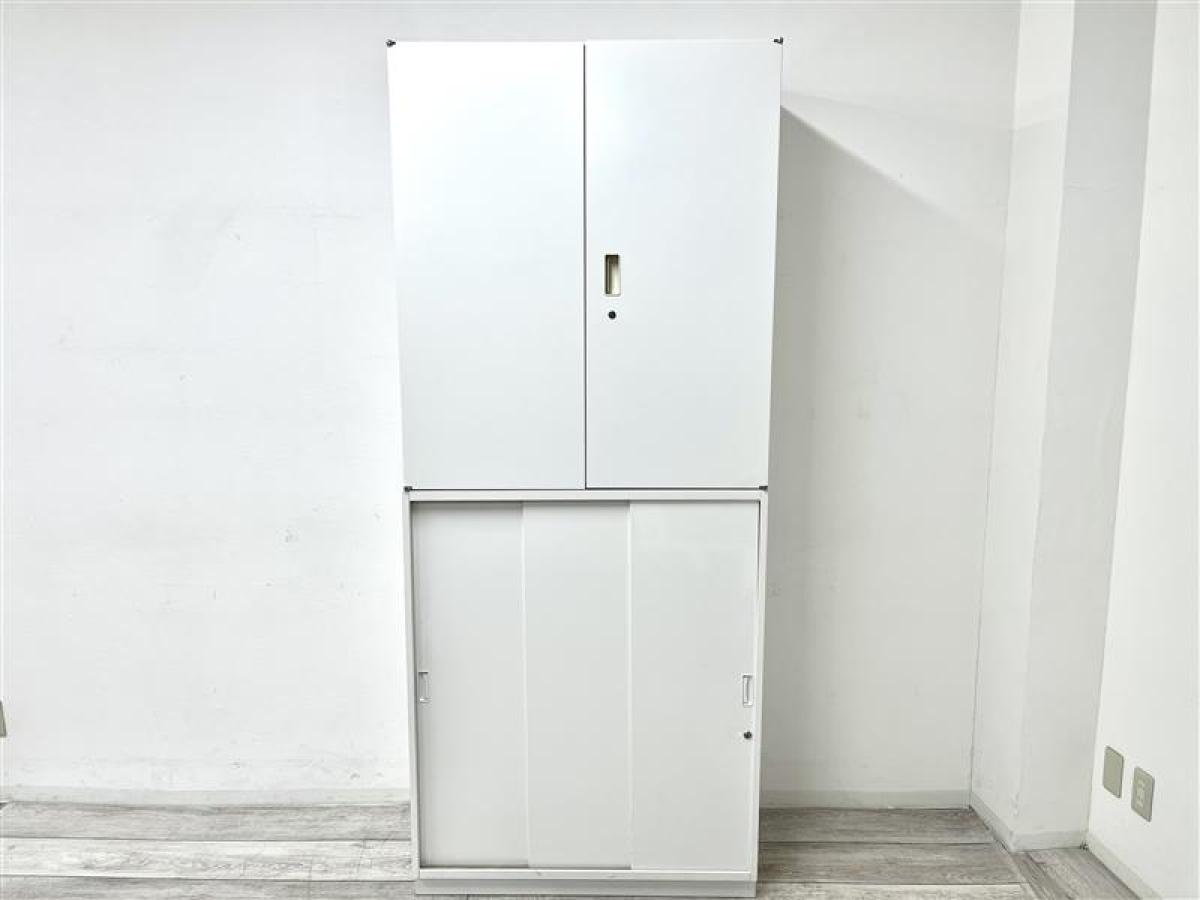 【定価約16万円】【収納に便利な上下書庫セット!】■イトーキ/シンライン ■上下書庫セット(下引違+上両開き) ■ホワイト ■シリンダー錠- 仙台店