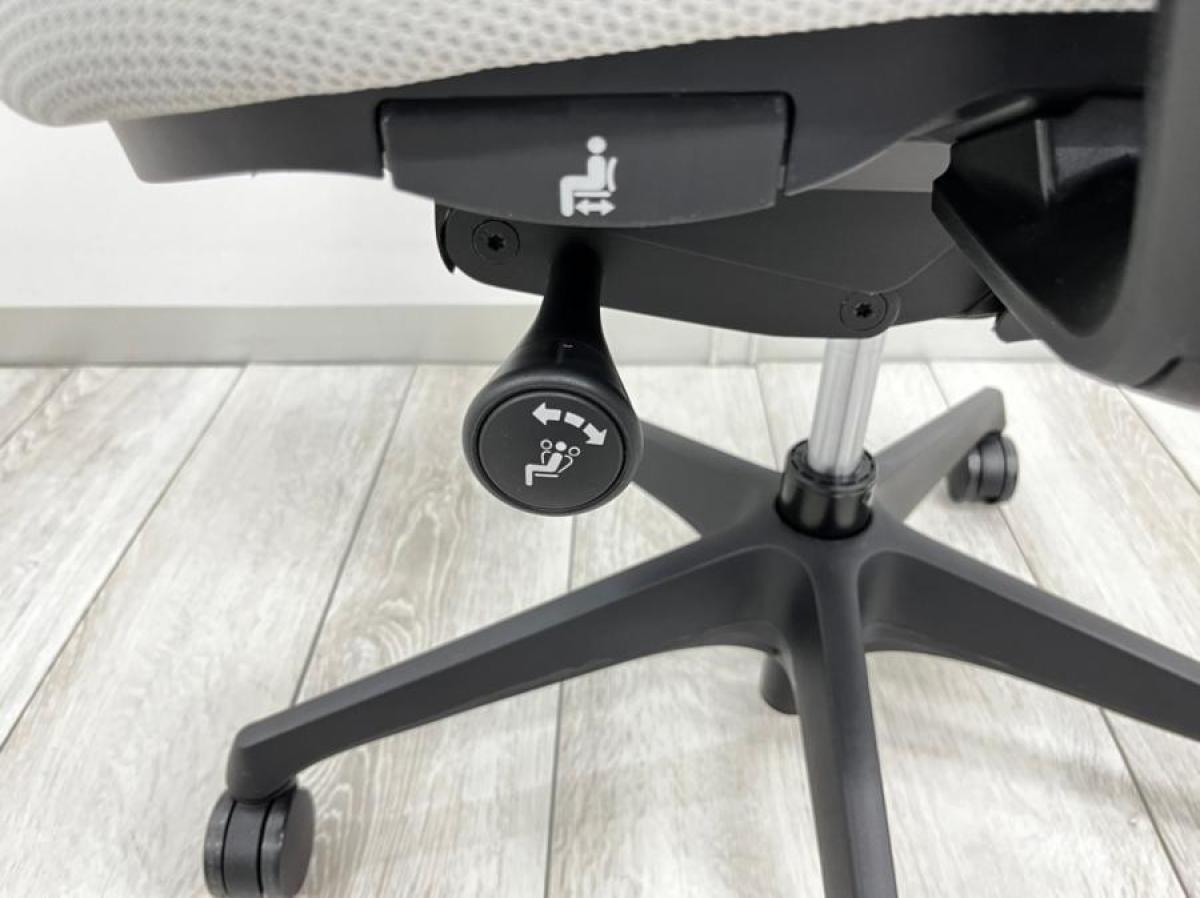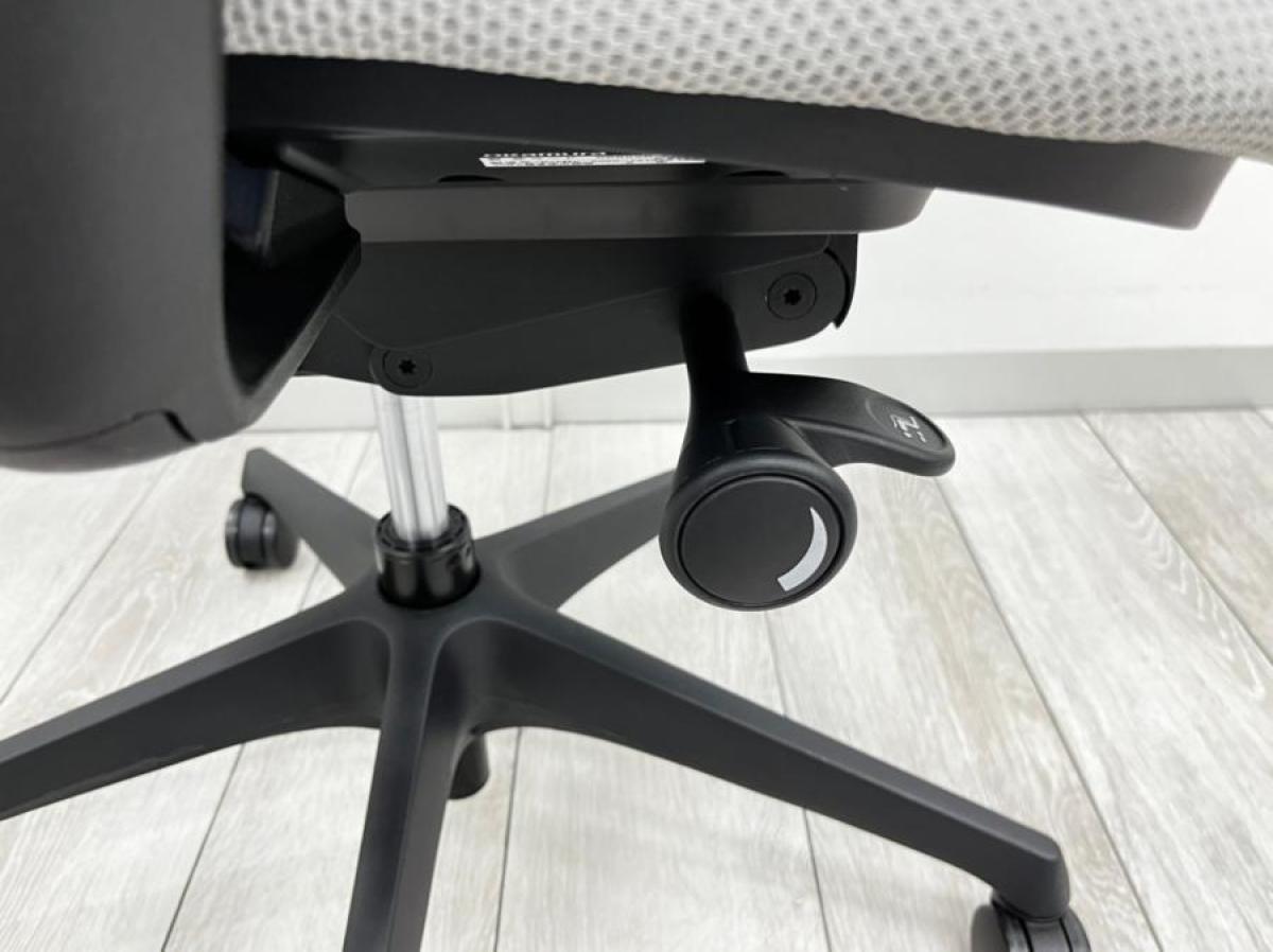 - 座面右下のダイヤル操作で、リクライニングの強弱調整が行えます。これまでのダイヤル式よりも、少ない回転数で、最弱?最強の調整が可能です。