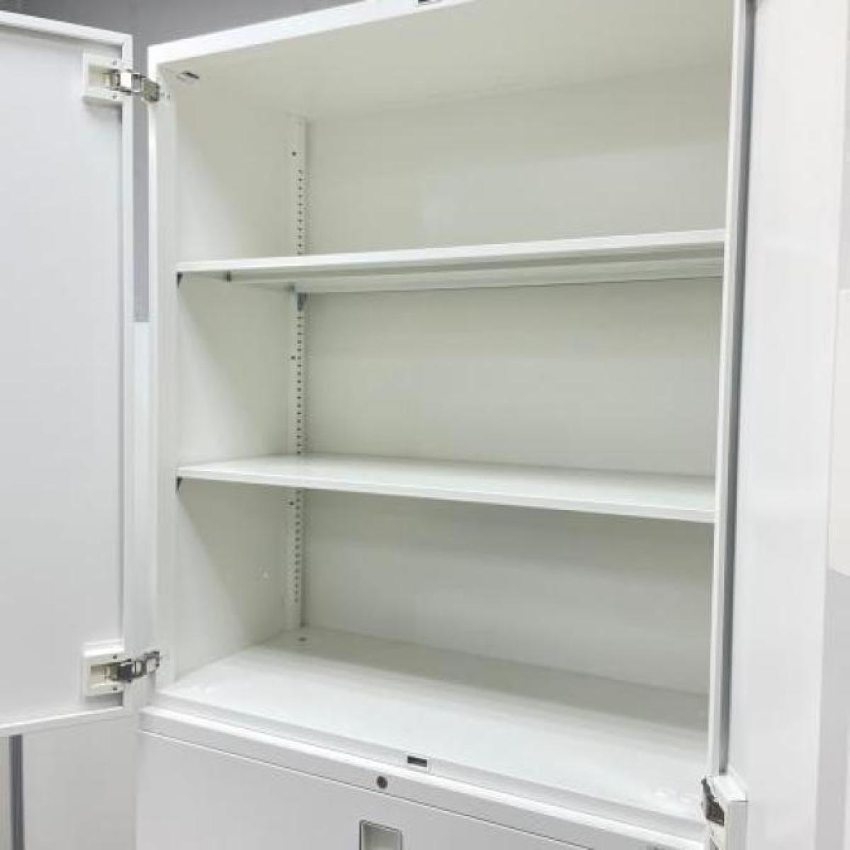 オカムラ レクトライン 3段ラテラル+両開き扉の書庫セット ホワイト シリンダー錠 鍵お付けします 人気商品