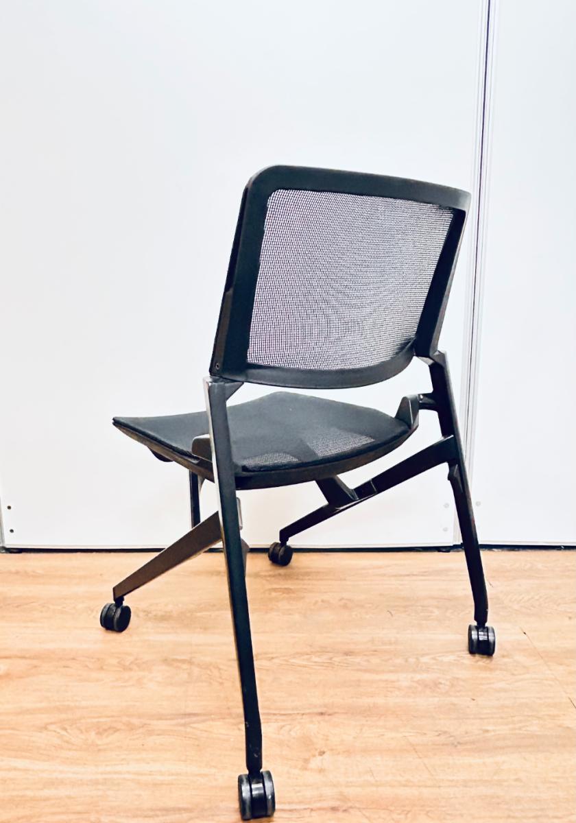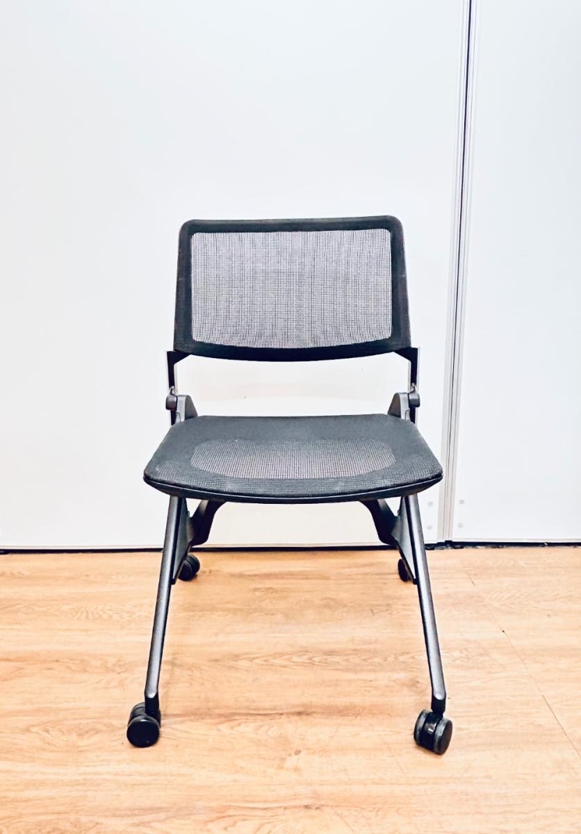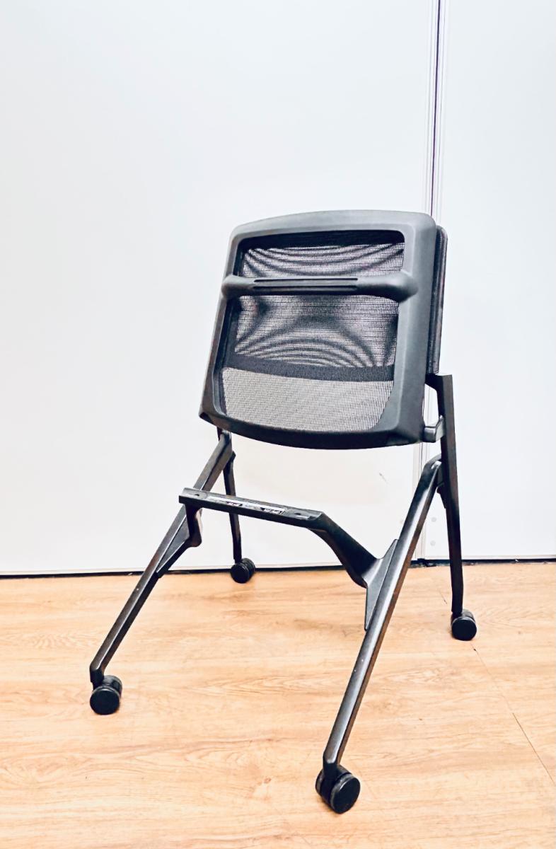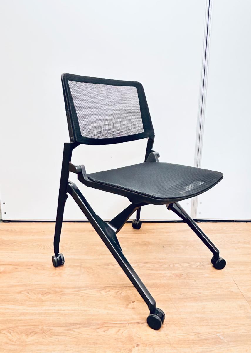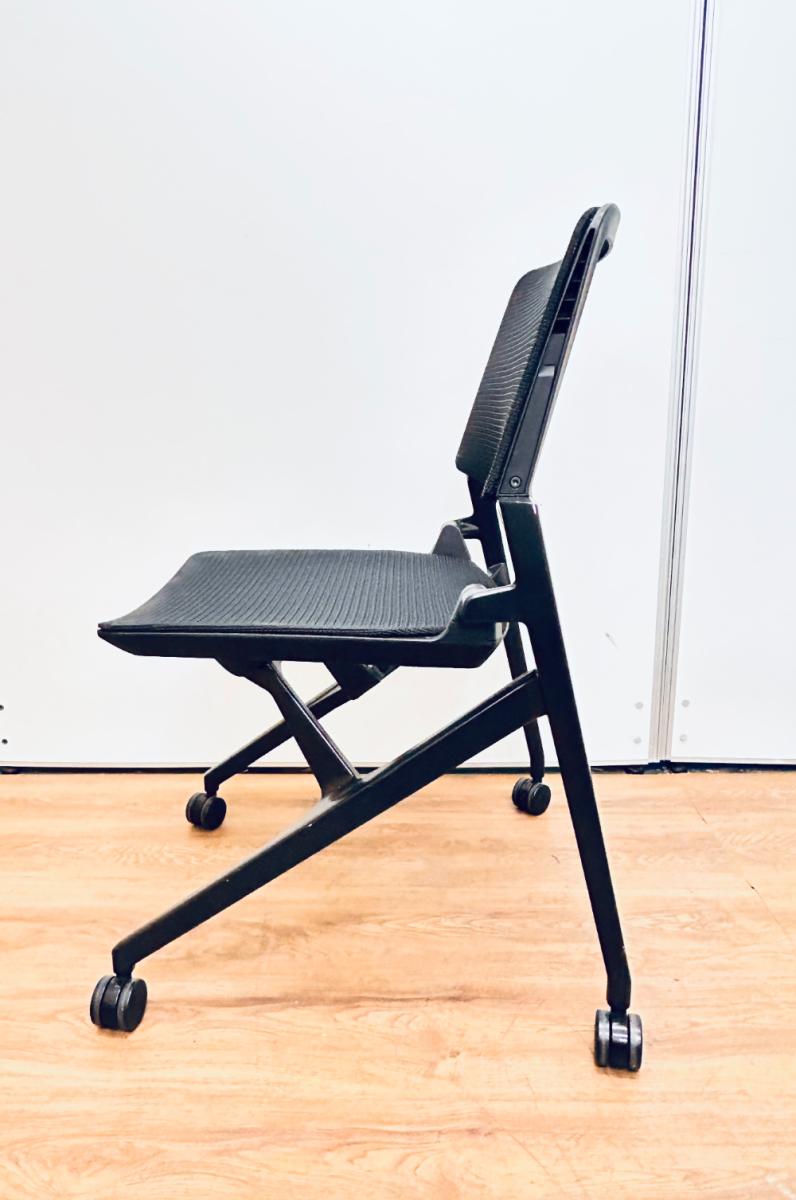 【4脚限定】【超レアな座面もメッシュなネスティングチェア】【現行モデル】オカムラ製 マルカシリーズ ブラックカラー クールなデザインのミーティングチェア!使わない時は重ねてコンパクトに! ネスティングチェア!! オフィスバスターズ 梅田本店- 大阪梅田本店